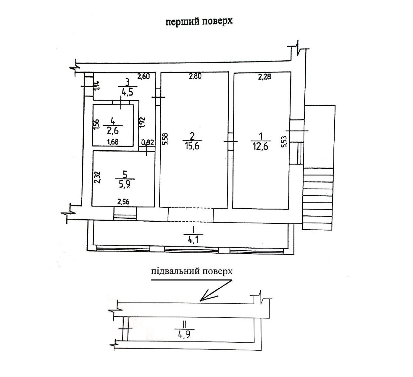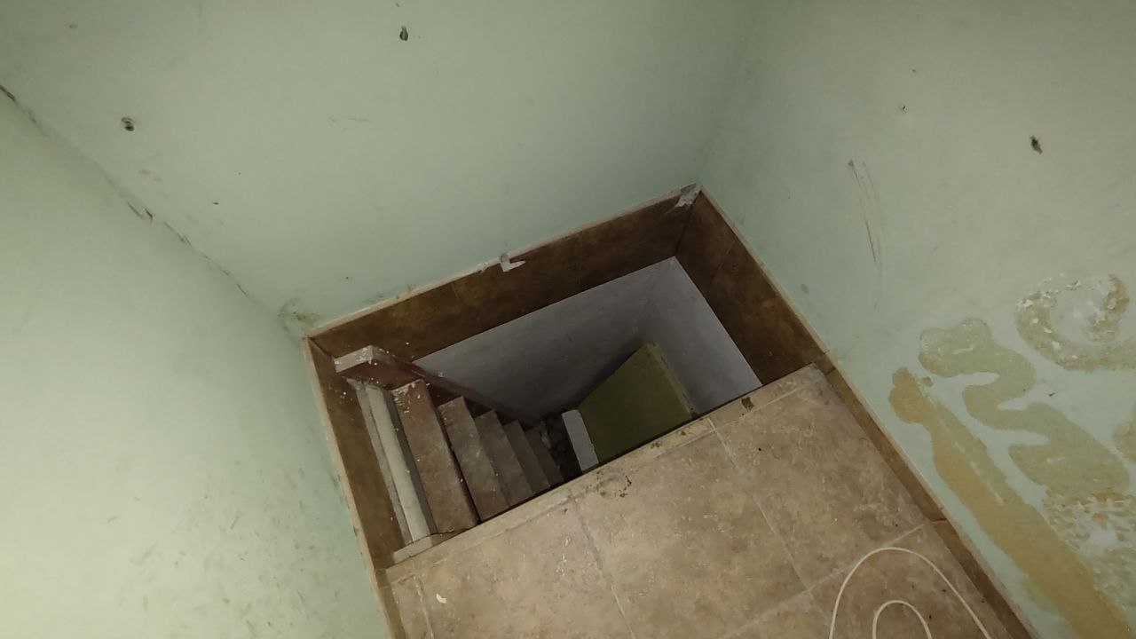 Высокий первый этаж, под балконом свой большой подвал.