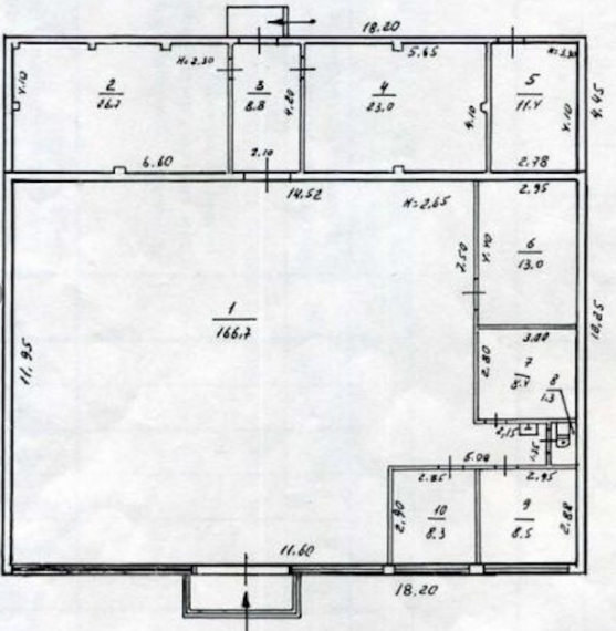 Здание расположено на угловом участке 14 соток (размеры участка ширина23,42мХ длинна 54,39м) .Госакт.