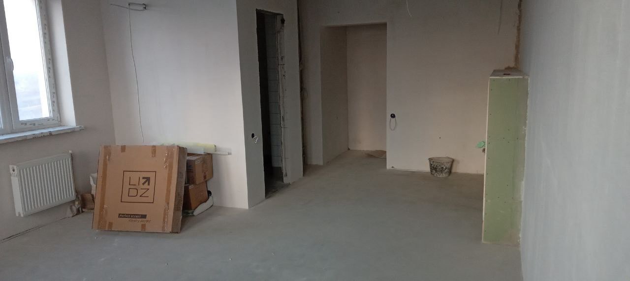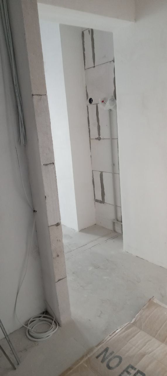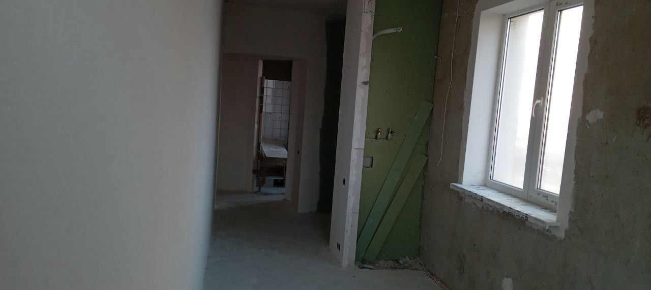 Состояние - под отделочные работы. Частично сделан ремонт - выравнены и частично окрашены стены, выравнен и залит пол, сделана разводка электрики и сантехники, на 80% выложена плитка в санузлах. Металлопластиковые окна, два кондиционера.