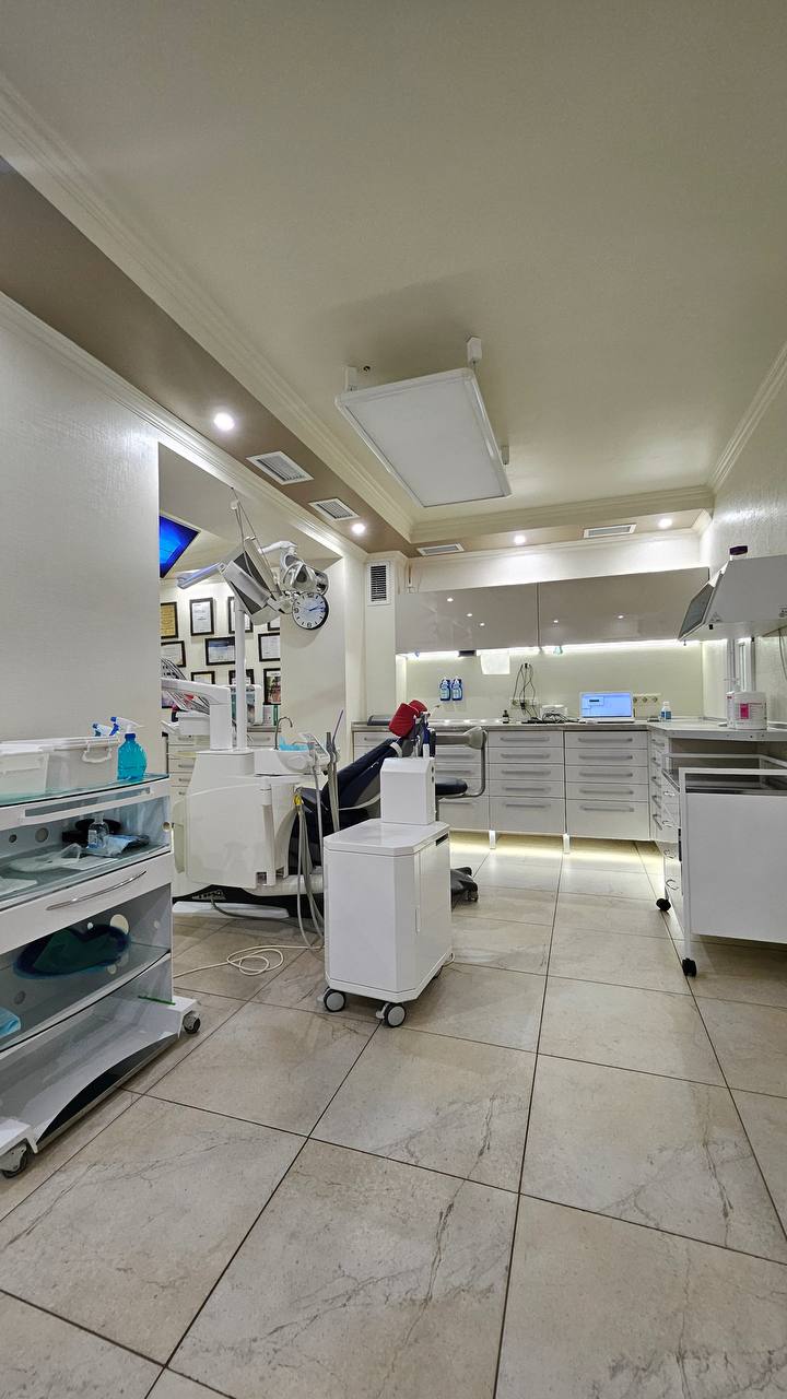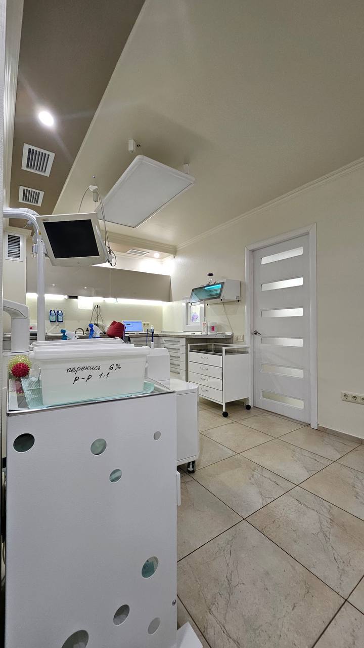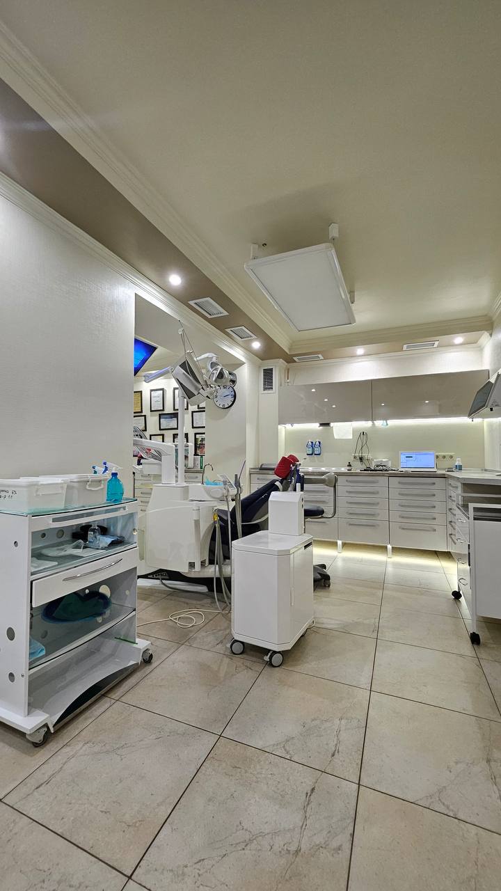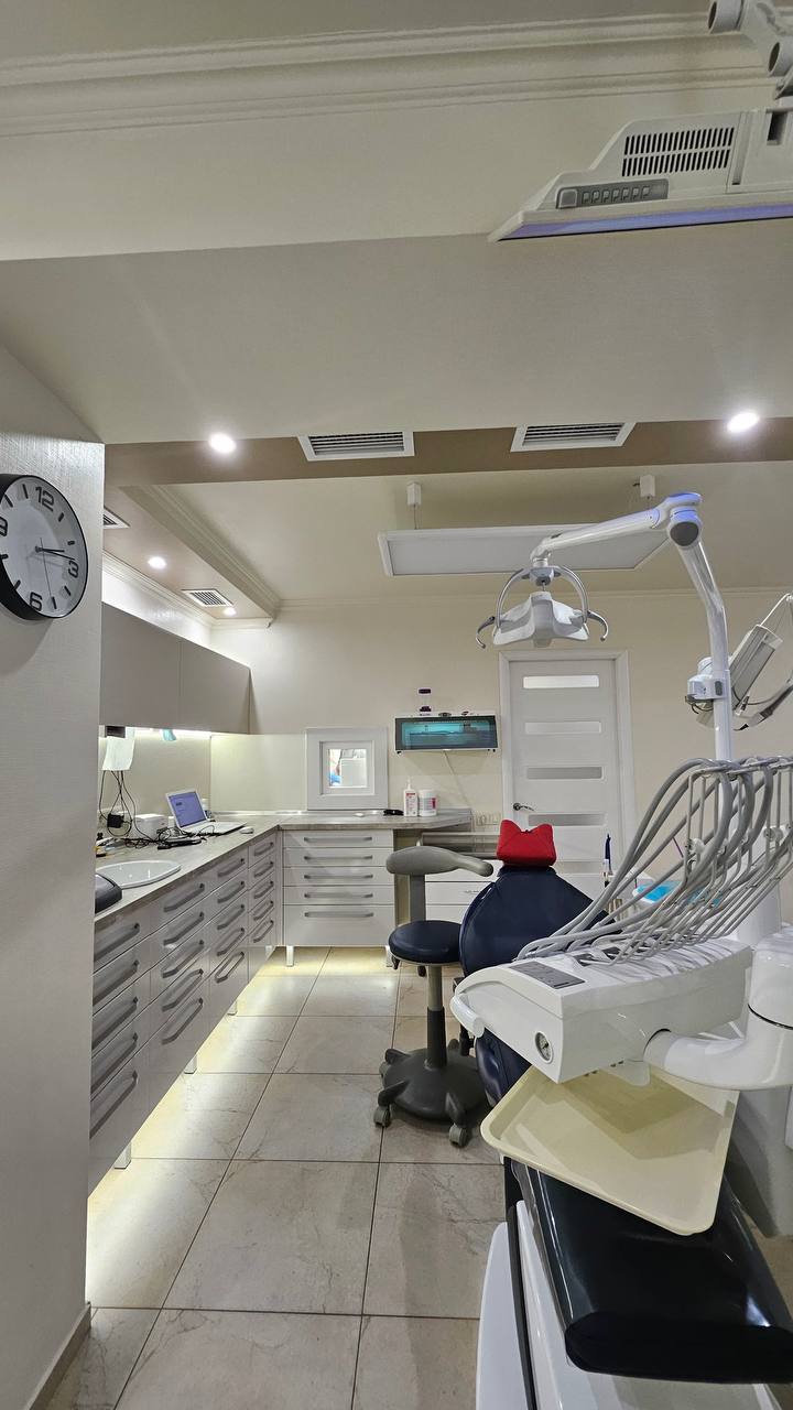 Три стоматологических кабинета, каждый полностью оснащён установками Sirona и Galit, микроскопом Leica, светильниками, креслами врача и ассистента, ТВ для пациентов