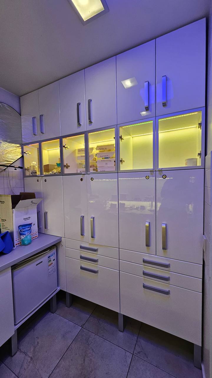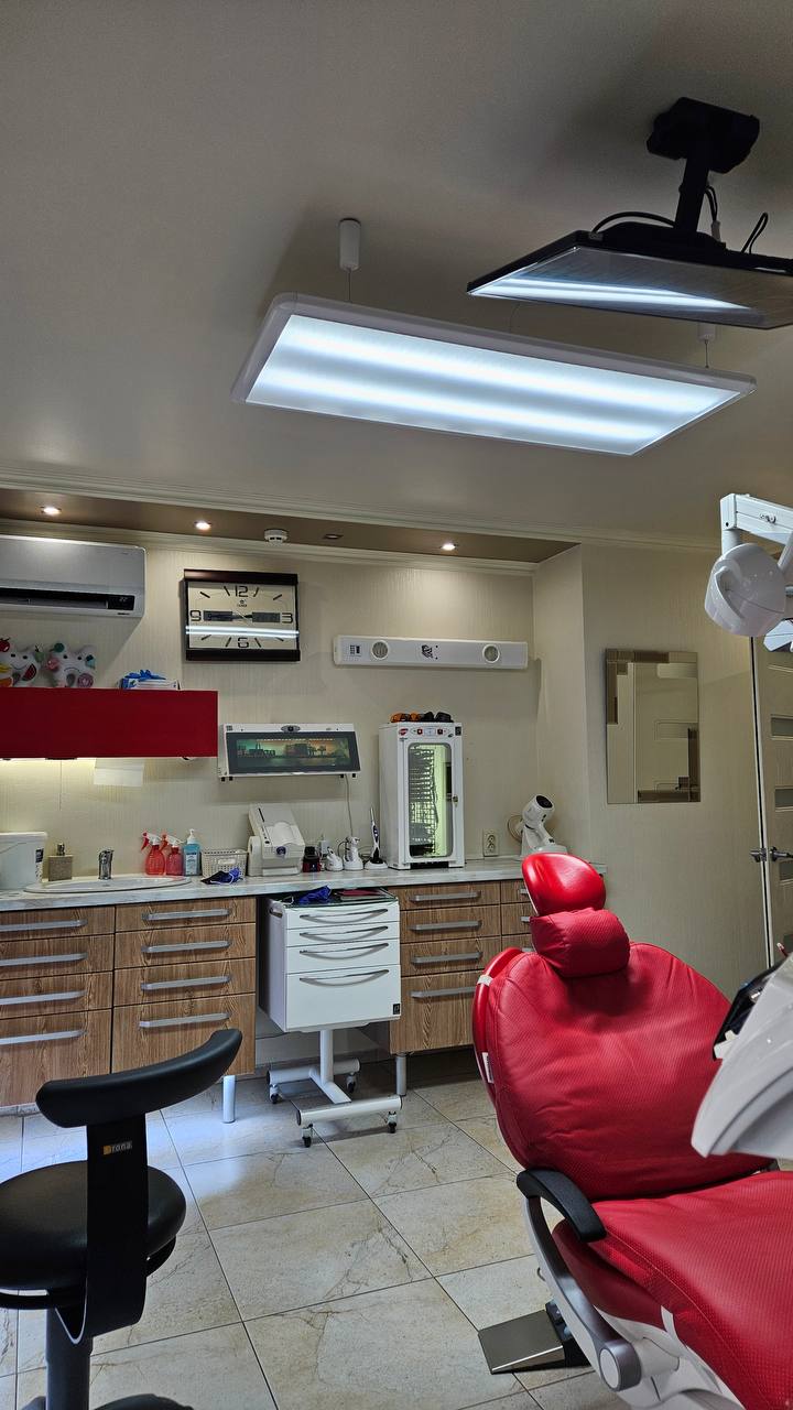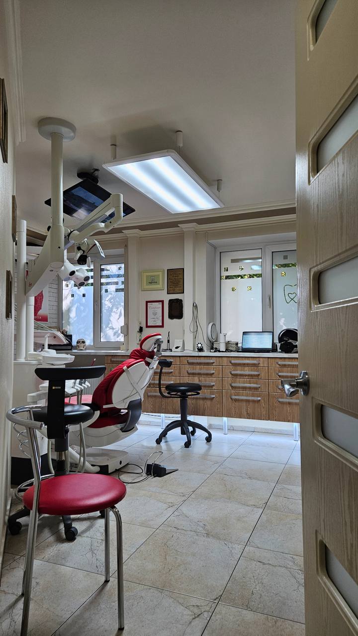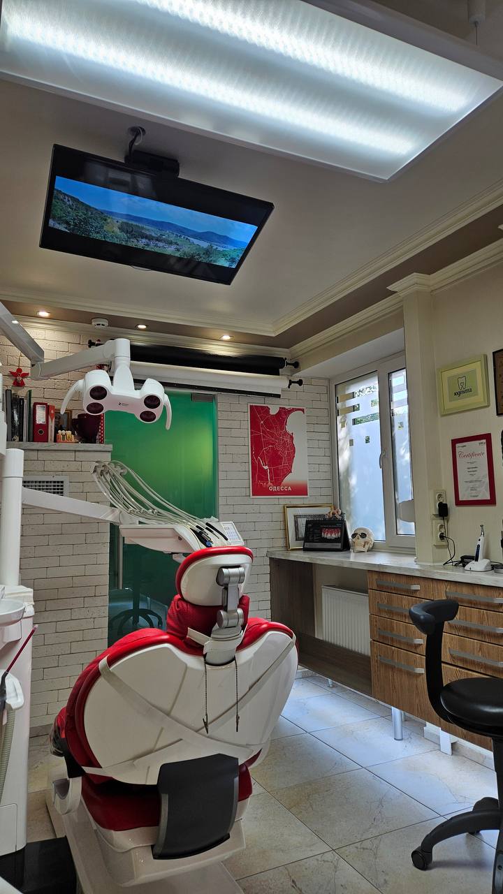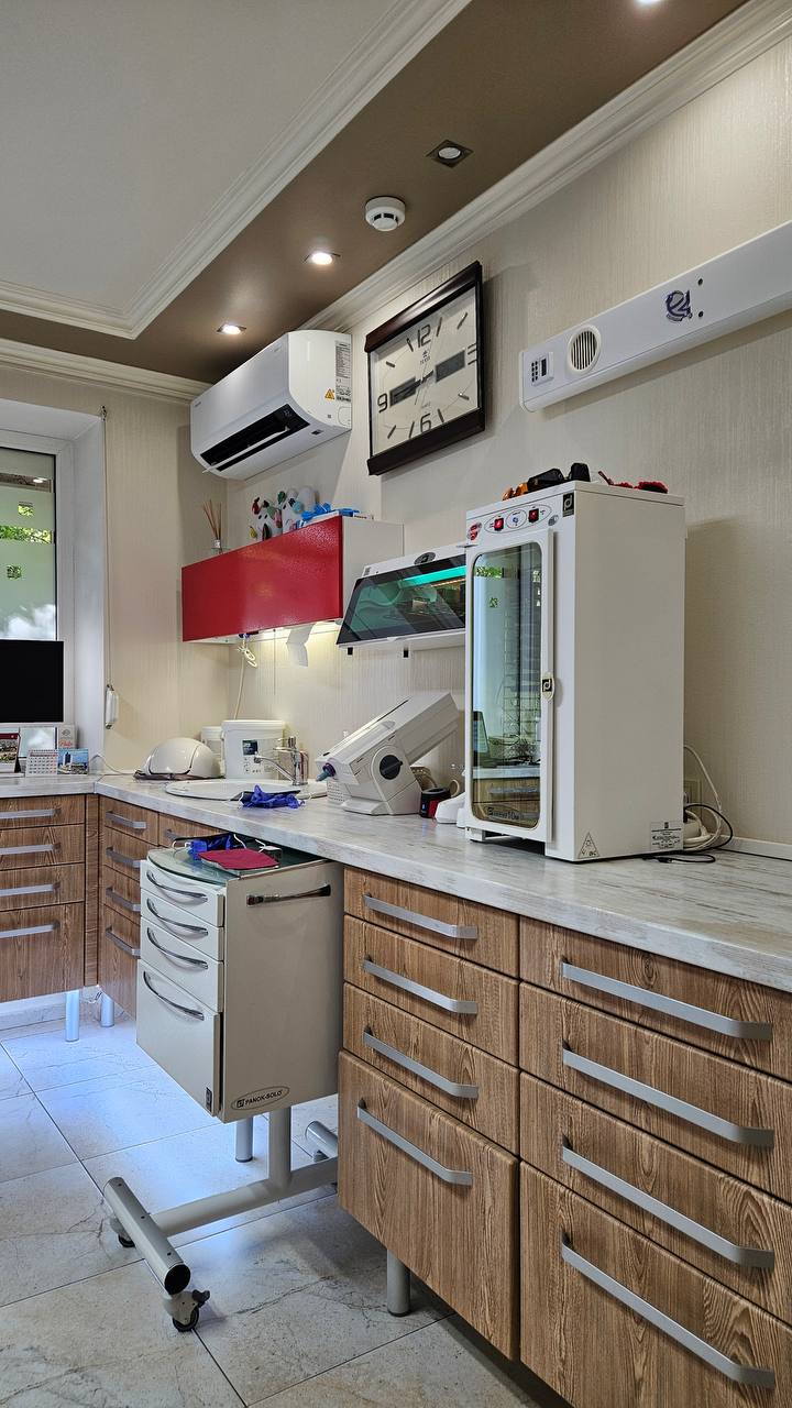 Три стоматологических кабинета, каждый полностью оснащён установками Sirona и Galit, микроскопом Leica, светильниками, креслами врача и ассистента, ТВ для пациентов