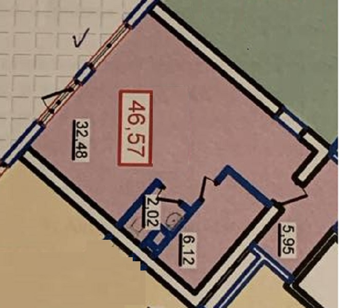 Помещение общей пл. 46,57м , расположено на 2ом этаже 24 эт.