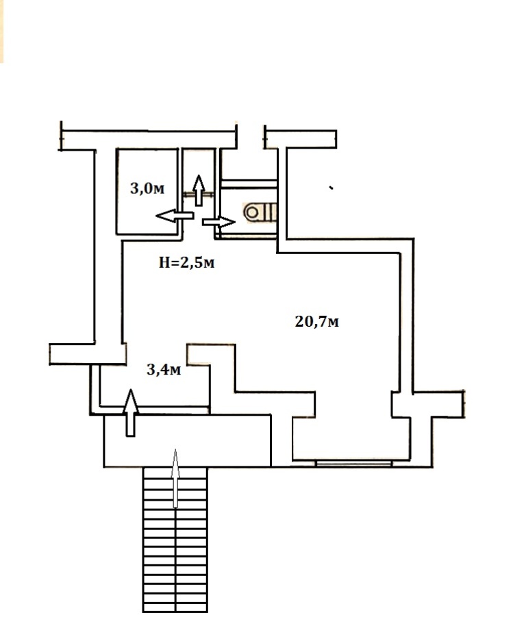 Санузел. Два подсобных помещения.