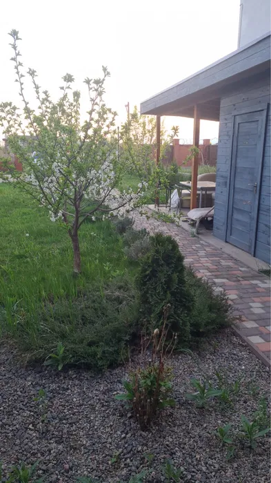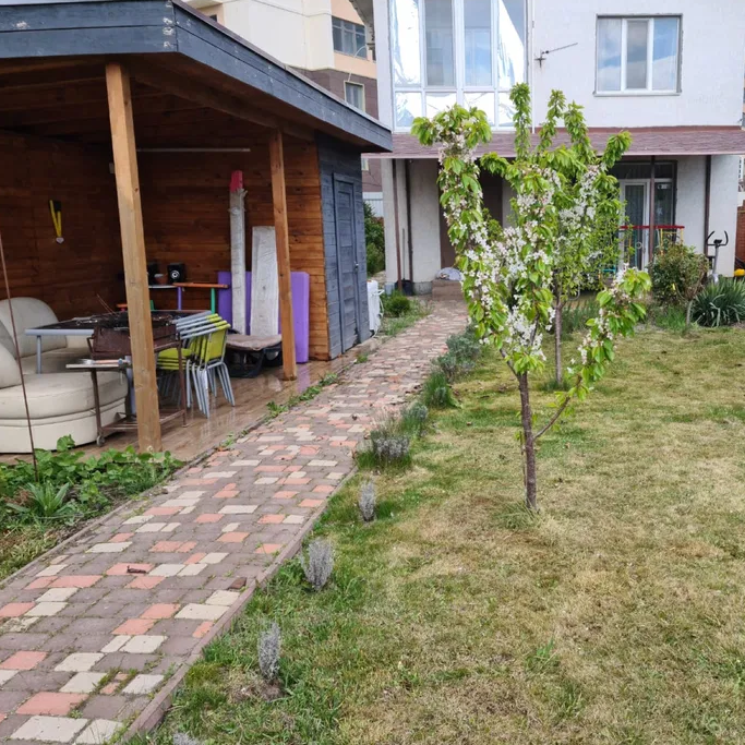 There is a gazebo for rest in a well -groomed area, there are two basements, a place for two cars.