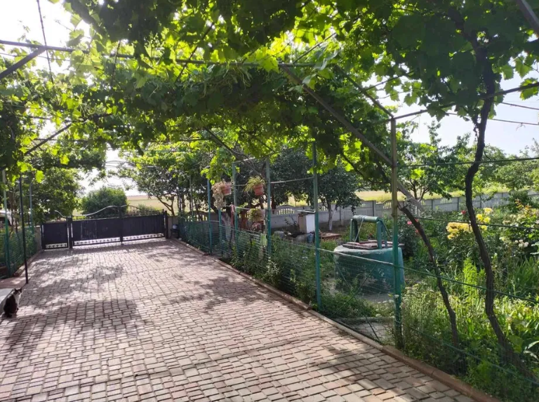 Во дворе гараж, погреб, колодец, альтанка. Двор выложен тротуарной плиткой.