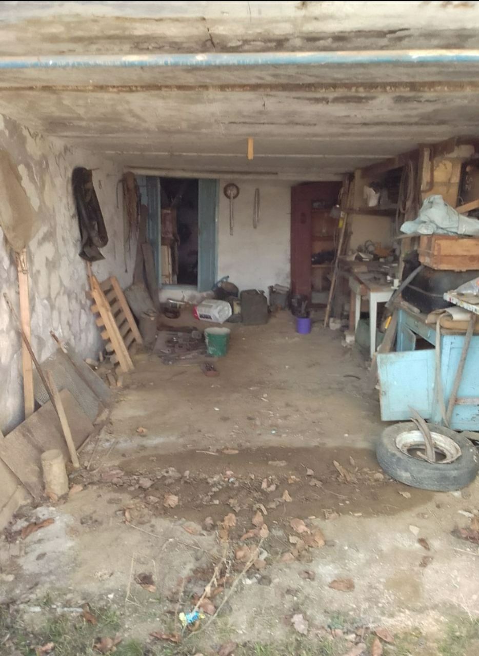 Во втором доме - две комнаты, подвал и выход в гараж. Также отапливается печкой.