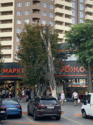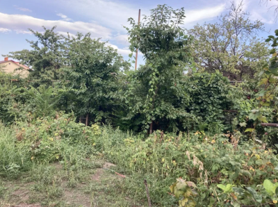 Земля чиста, без якихось будівель, частина - забетонірована, частина - під ландшафтними рослинами та виноградом.