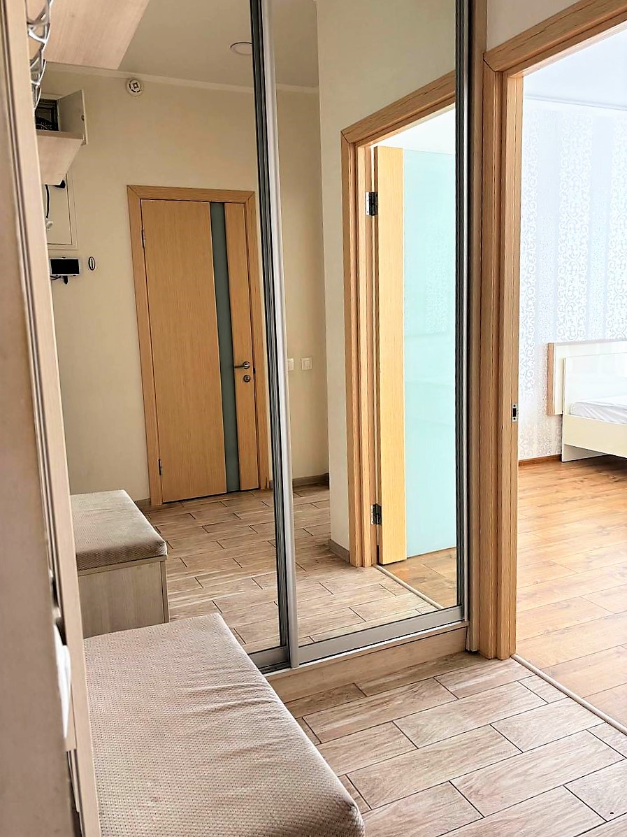 I will sell a 1-room apartment on the Lustdorf road.47 sq.m. The state of European -Raced kitchen 16 sq.m.s.M.S. furniture and equipment and 2 x sleeping sofas. A room 20 sq.m.With a dressing room. Sanuzel is combined, a boiler, a washing machine, a large shower cabin.Floors laminate, tile. MPO. Balcon is glazed.