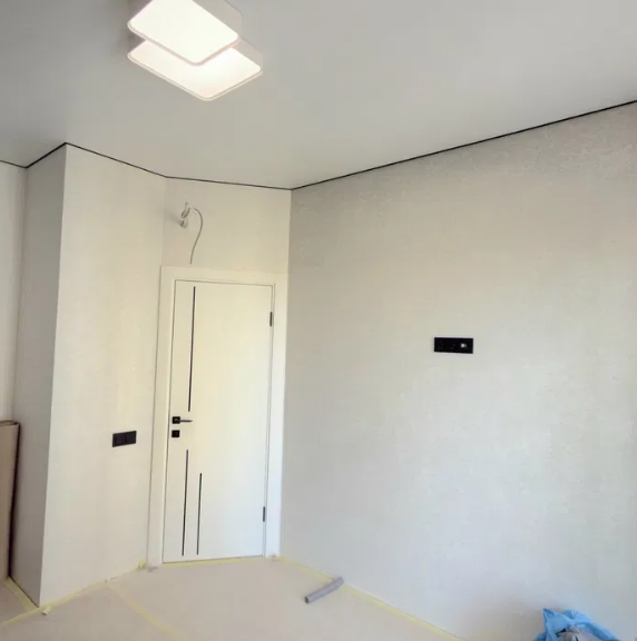 Остаётся положить ламинат, поклеить обои, натянуть потолки, установить межкомнатные двери.