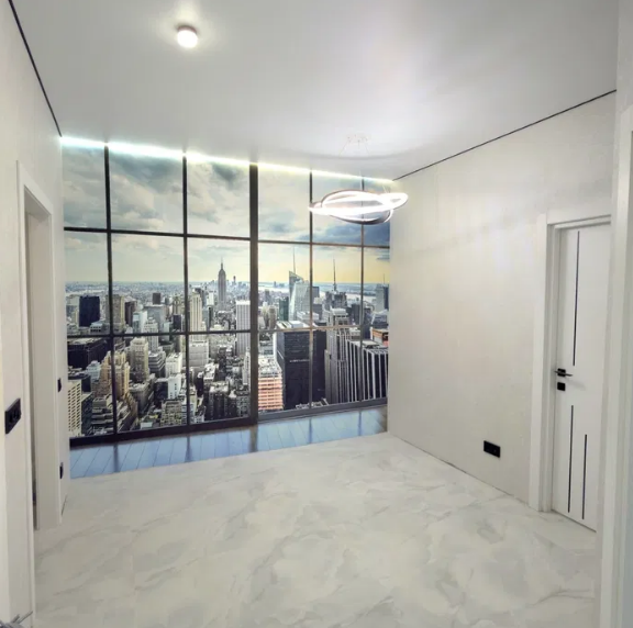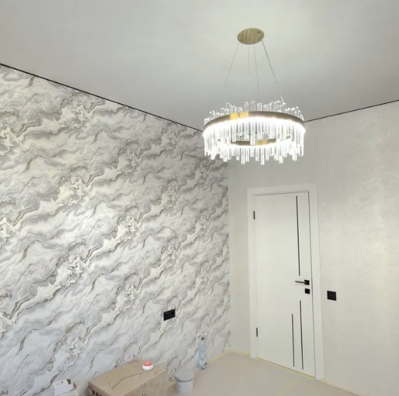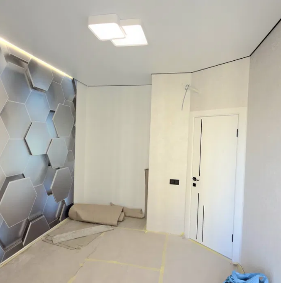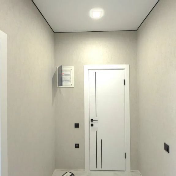Остаётся положить ламинат, поклеить обои, натянуть потолки, установить межкомнатные двери.