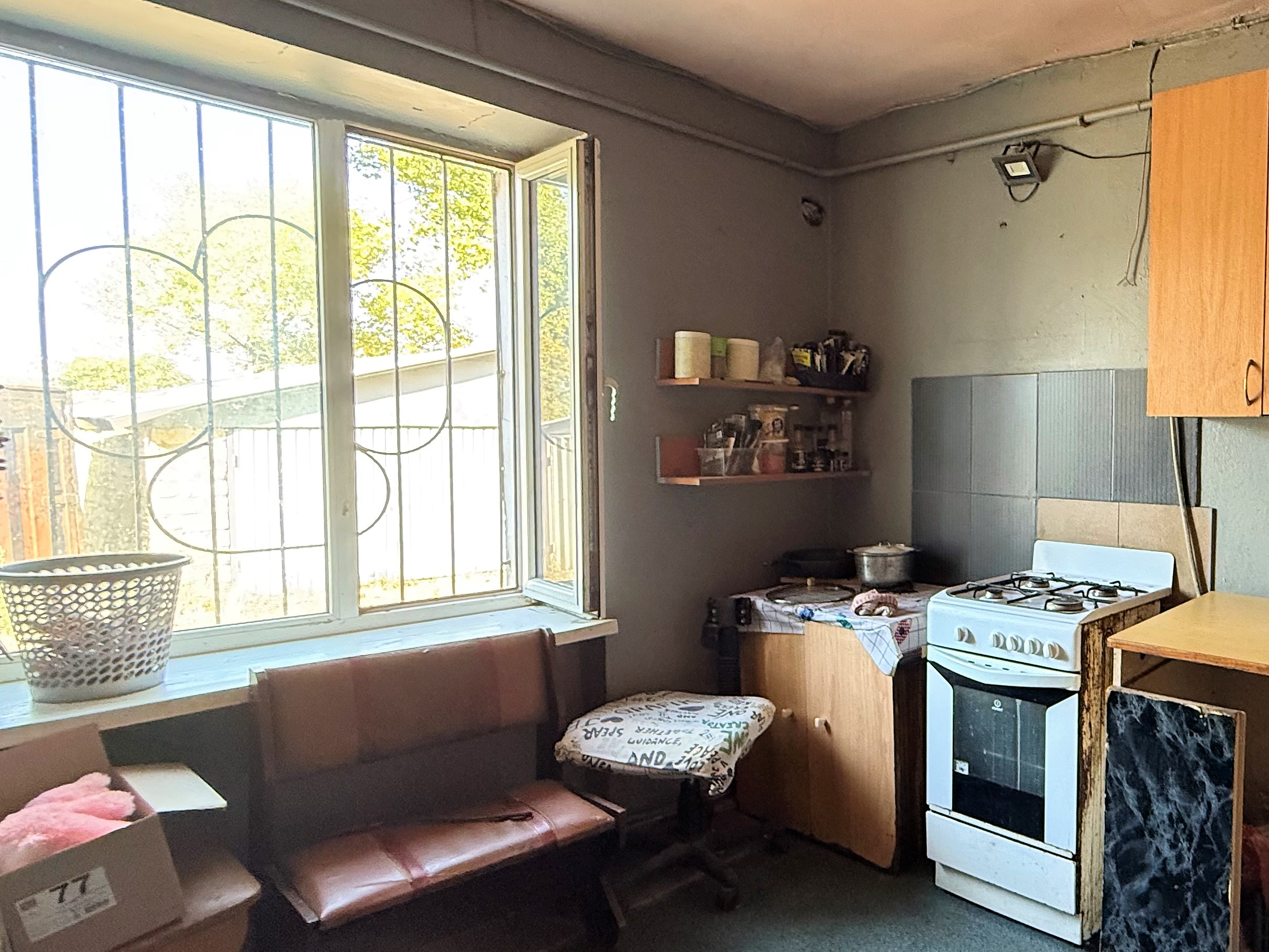 Комната расположена на первом этаже,двухэтажного дома.установлено металопластиковое окно и рядом есть возможность сделать дверь,для выхода в свой дворик.