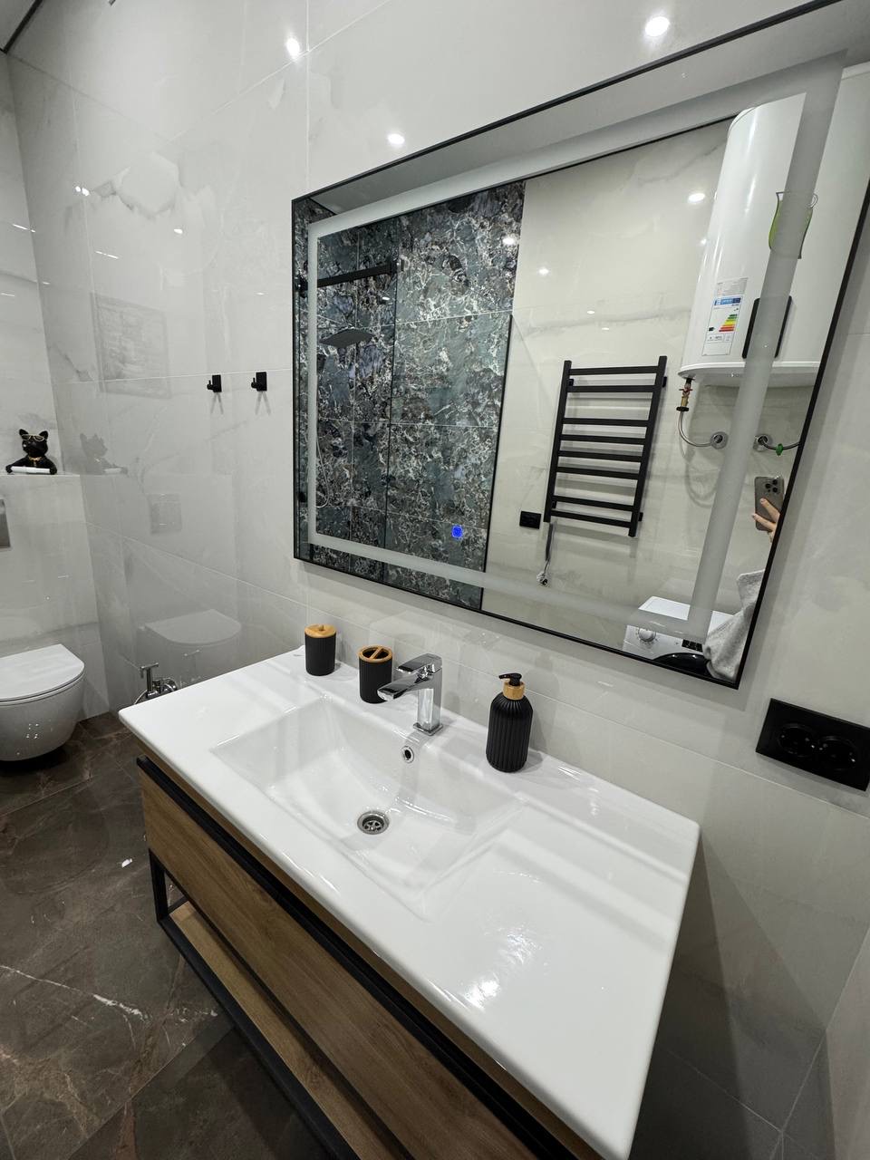 При входе в квартиру вас встречает красивый гостевой диванчик , большой вместительный шкаф для верхней одежды .Все продумано до мелочей .Санузел совмещен, красивая облицовка, современная душевая кабина. Просторная ,светлая укомплектована всем необходимым квартира ждёт своего владельца.