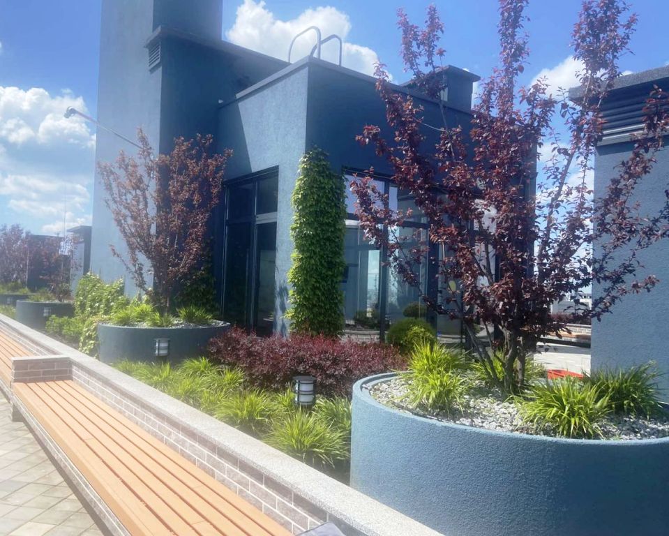 На крыше комплекса обустроена зеленая зона с ландшафтным дизайном идеальное место для отдыха. Закрытый двор свободен от машин, а в подъезде расположены четыре грузопассажирских бесшумных лифта и консьерж-сервис. Комплекс с собственной инфраструктурой, включая подземный паркинг.