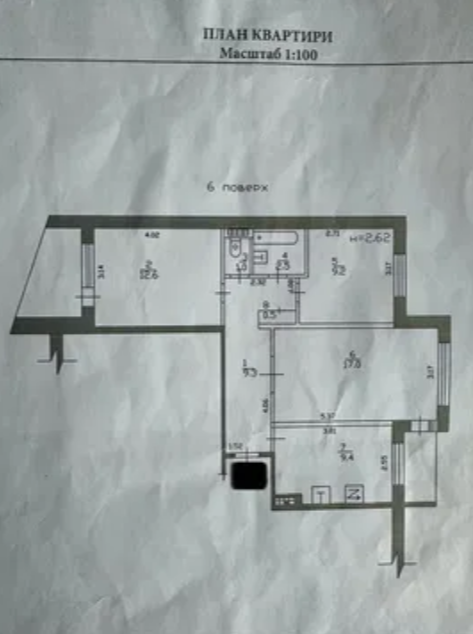 Квартира общей площадью 64 кв.м. расположена на 6-ом этаже 9-ти этажного дома.