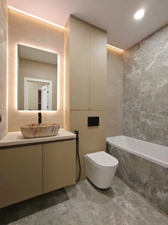 Просторная планировка: кухня‑студия с выходом на балкон, отдельная спальня и удобная гардеробная, которая создаёт максимум места для хранения.