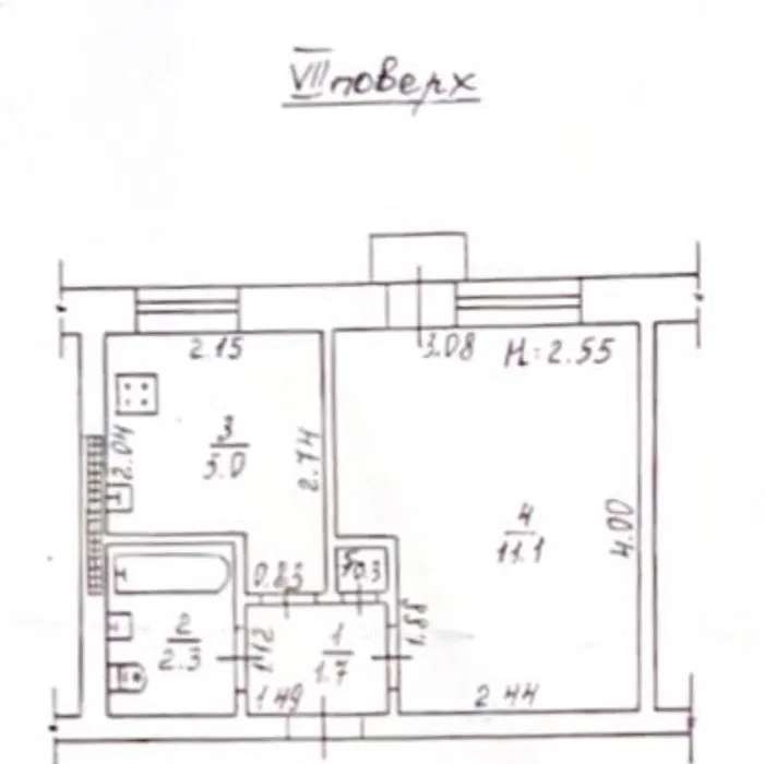 Общая площадь квартиры 21 кв м, комната 11 кв м, кухня 5 кв м.