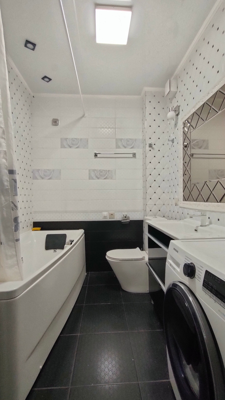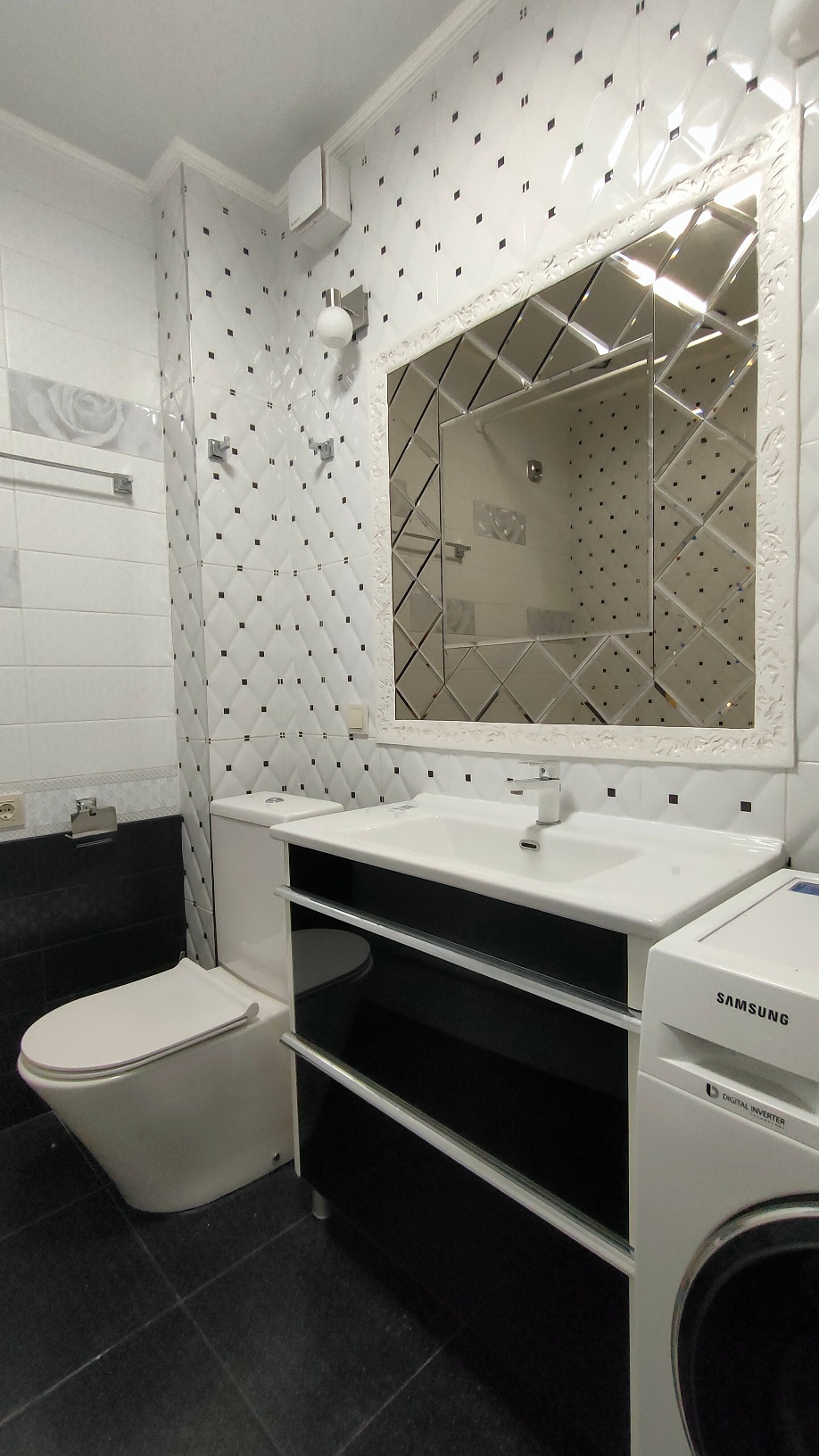 Санузел в светлых тонах, полностью оборудован