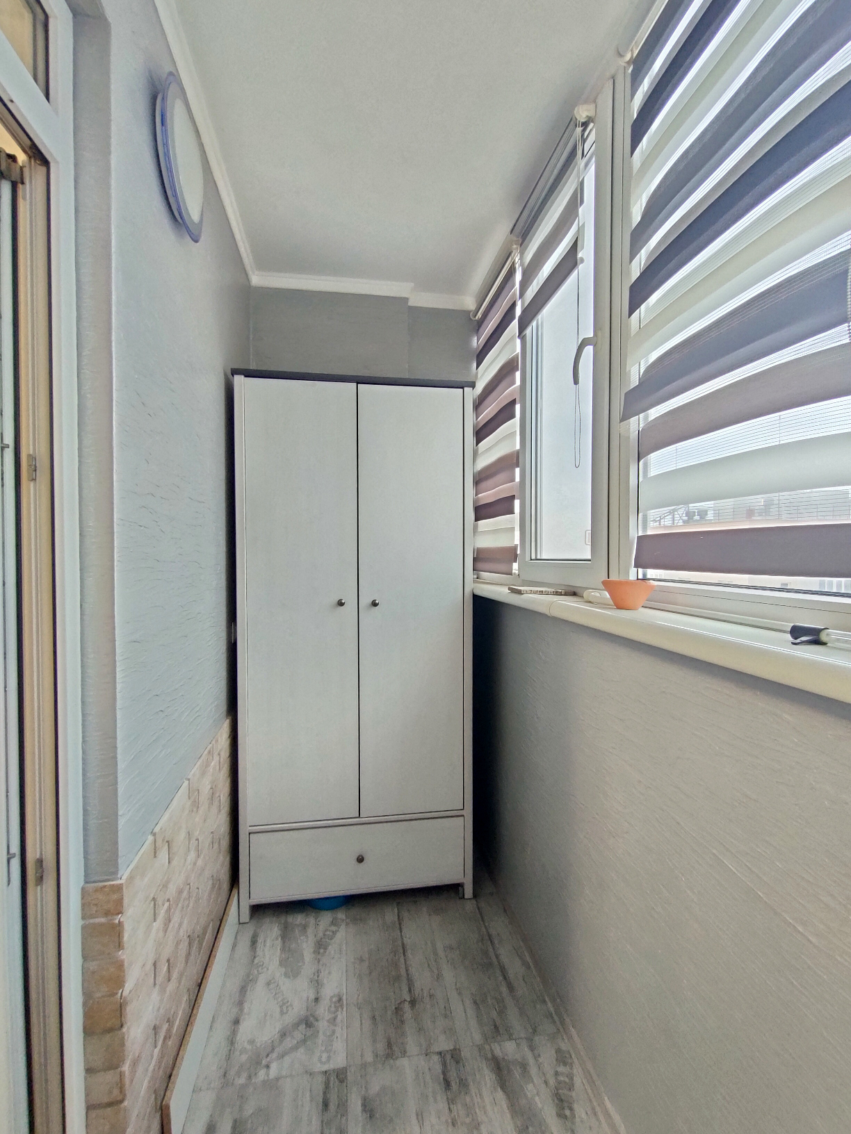 Застеклённый балкон со шкафом для хранения