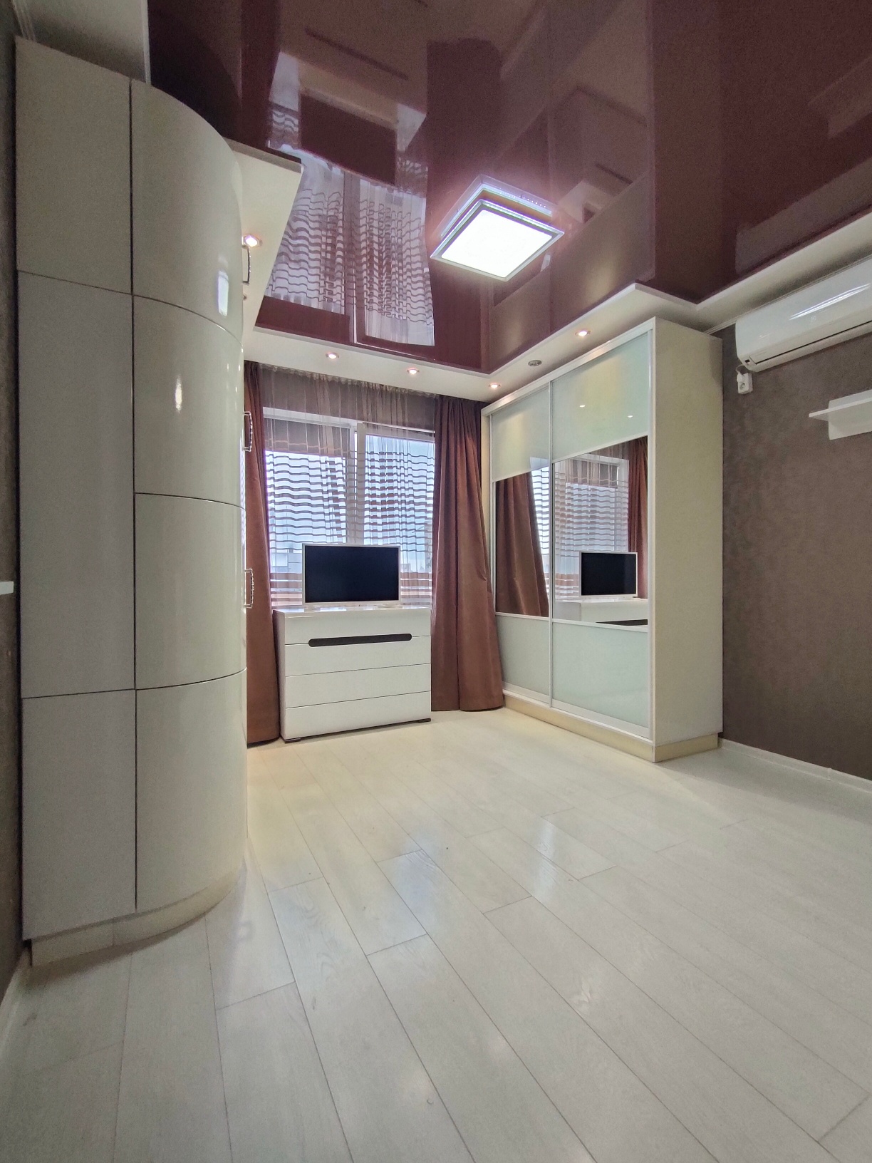 Спальня с двуспальной кроватью, кондиционером, ТВ и двумя вместительными шкафами