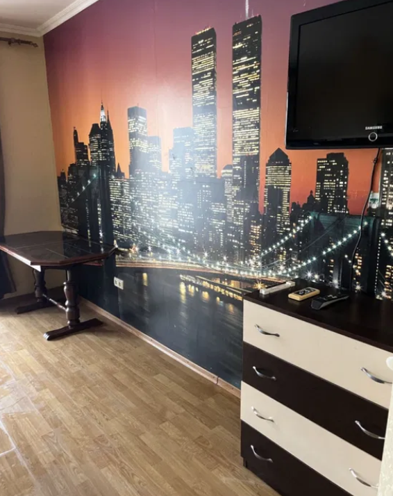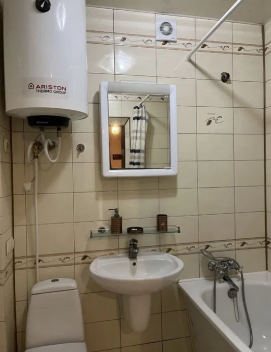 Квартира укомплектована мебелью и бытовой техникой: плита, бойлер, стиральная машина, холодильник, кондиционер, телевизор, интернет. Есть вместительный шкаф и мягкая мебель.