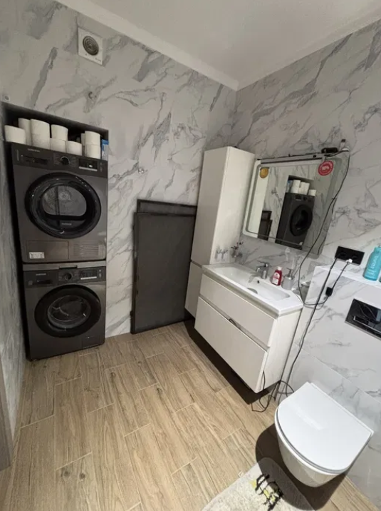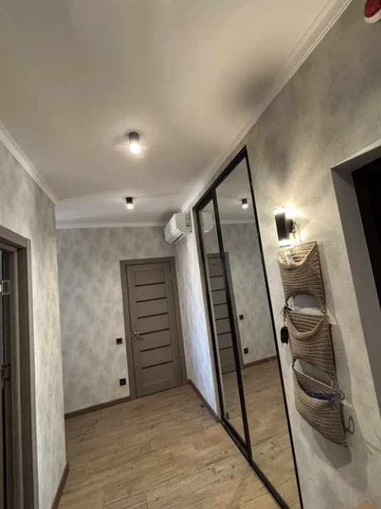 В квартире выполнен качественный евро-ремонт в светлых тонах. Просторная кухня полностью укомплектована мебелью и техникой, удобная гостиная и изолированная спальня создают комфортное пространство для жизни. Установлен кондиционер, аккуратный ламинат, современная сантехника, продуманное освещение.