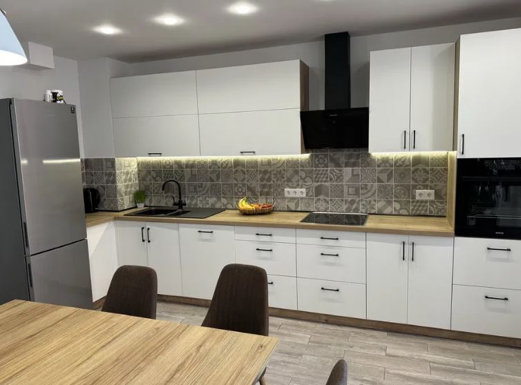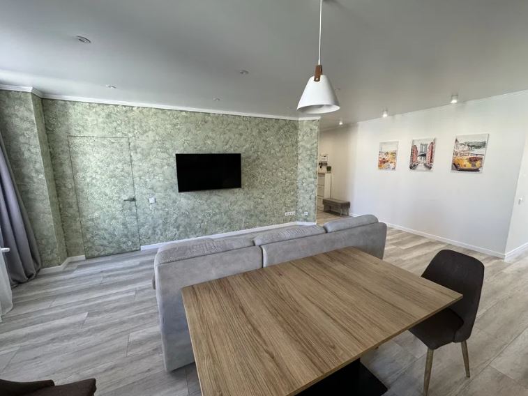 В квартире две отдельные комнаты + зал объединен с кухней. Установлена дорогая кухня, квартира полностью укомплектована новой техникой.