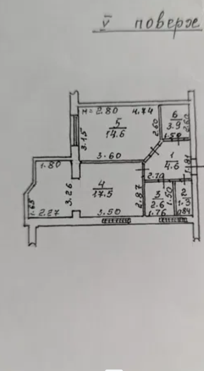 Загальна площа — 44,5 кв.м., кухня з балконом — 17,5 кв.м., кімната — 14,5 кв.м.