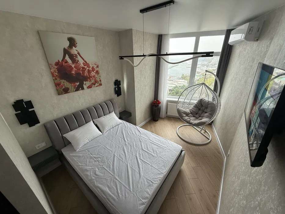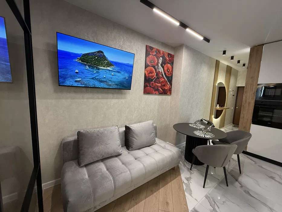 Светлая и уютная квартира у самого моря в ЖК «Морская Симфония», который расположен на первой линии моря, ближе жилья нет, с бесплатным гостевым паркингом (за доп. есть подземный паркинг), охраняемой территорией и закрытым двором.