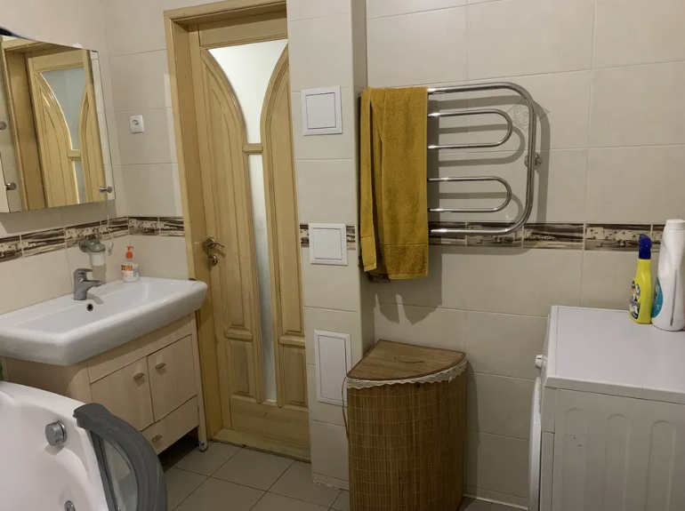 Кухня с фурнитурой "Блюм" и встроенной техникой, проводка и сантехника свежая, потолки шпаклеванные, не натяжные, горизонтальный бойлер. Все межкомнатные двери из натурального дерева, есть два огромных шкафа купе.