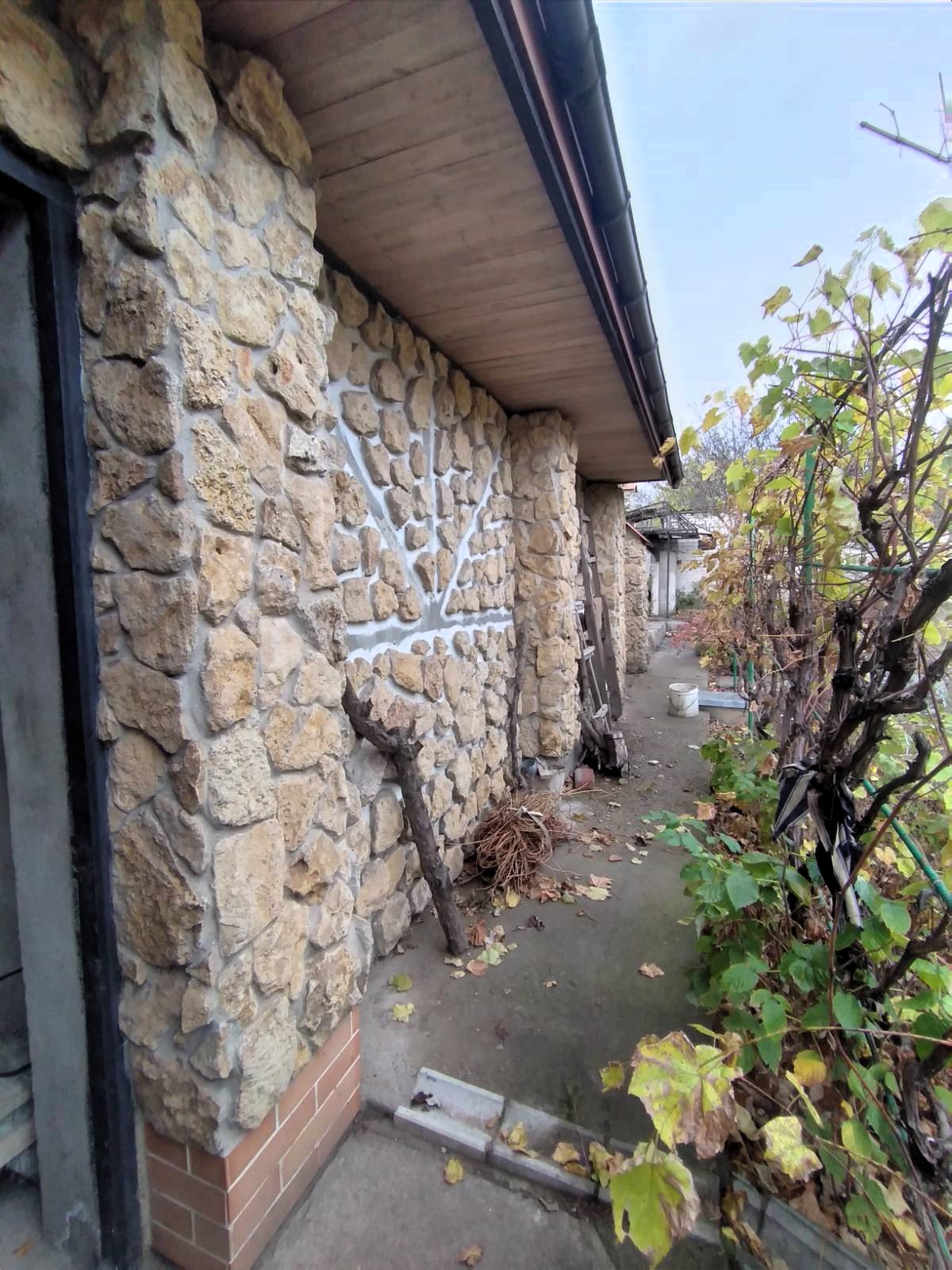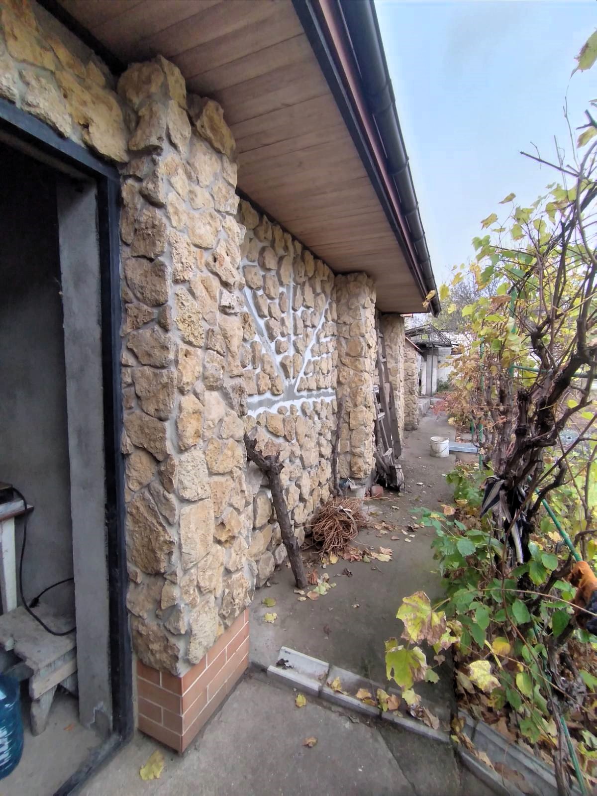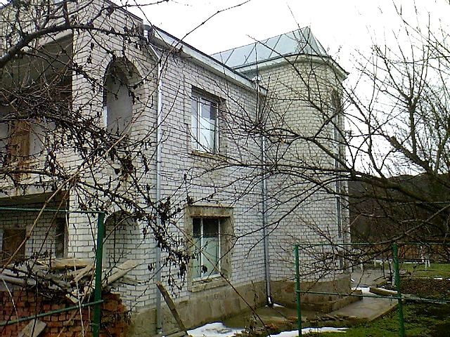 Капитальный хозяйский дом из ракушечника, облицован белым кирпичом.