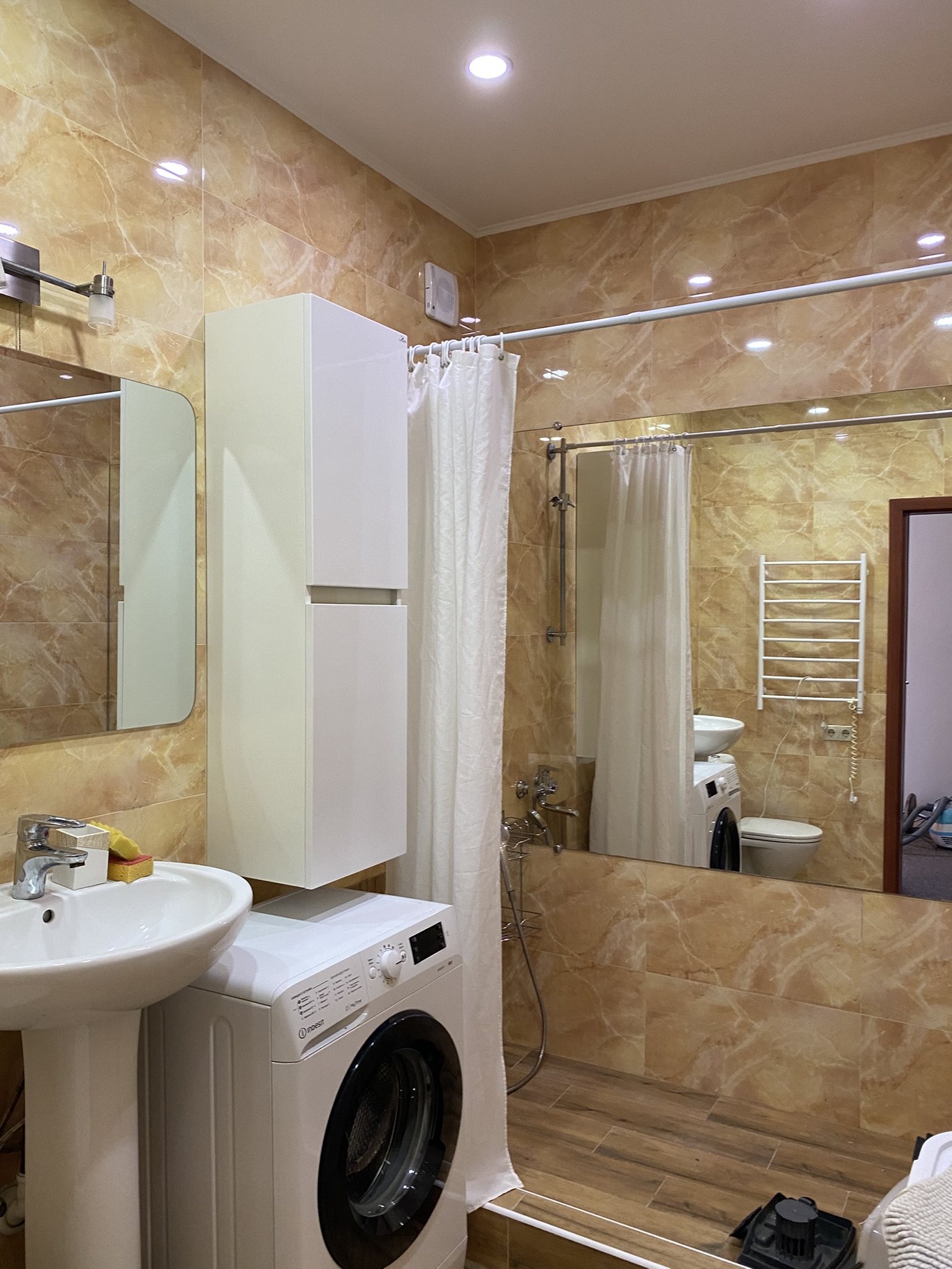 Ремонт в современном стиле, выдержан в спокойной пастельной гамме.