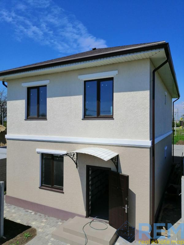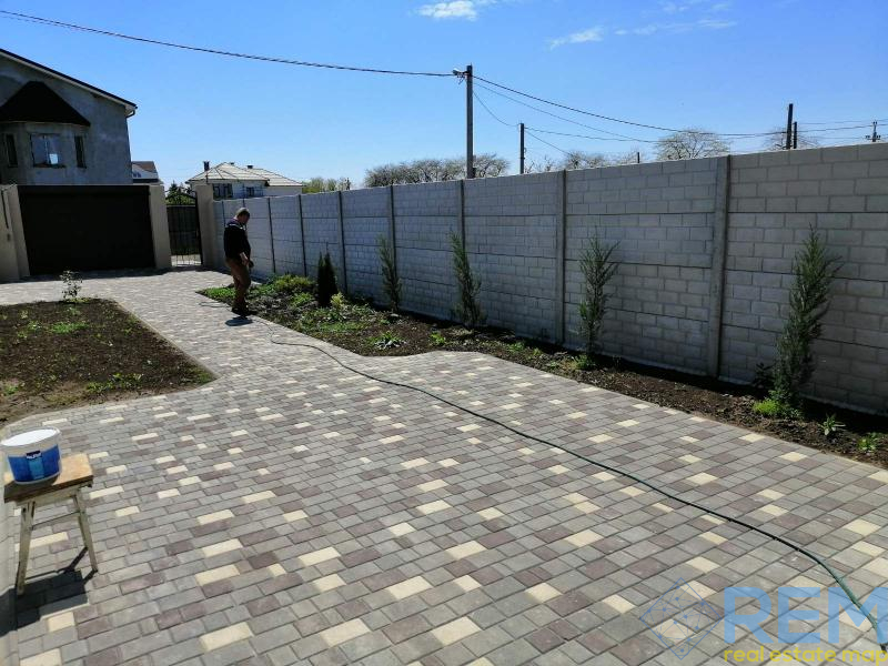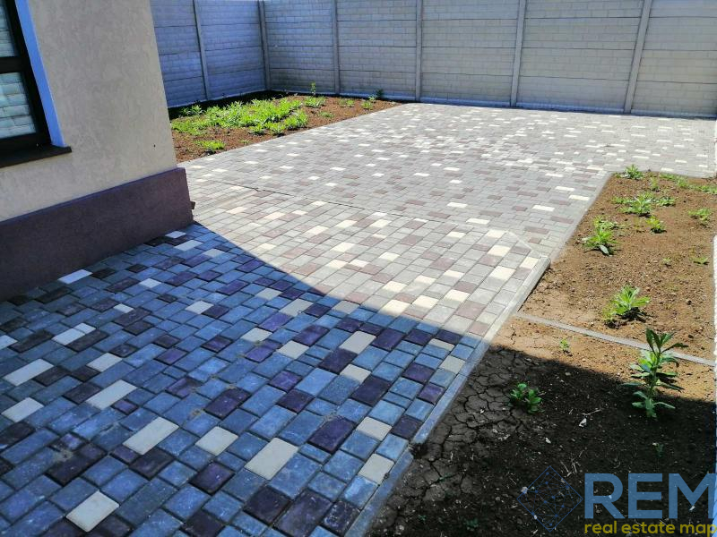Новый дом общей площадью 129 кв.м., 4 раздельные комнаты, кухня-гостиная, 2 санузла. Все коммуникации заведены в дом, двор выложен плиткой. Участок в форме флажка, ширина заезда 5м., далее правильной формы.