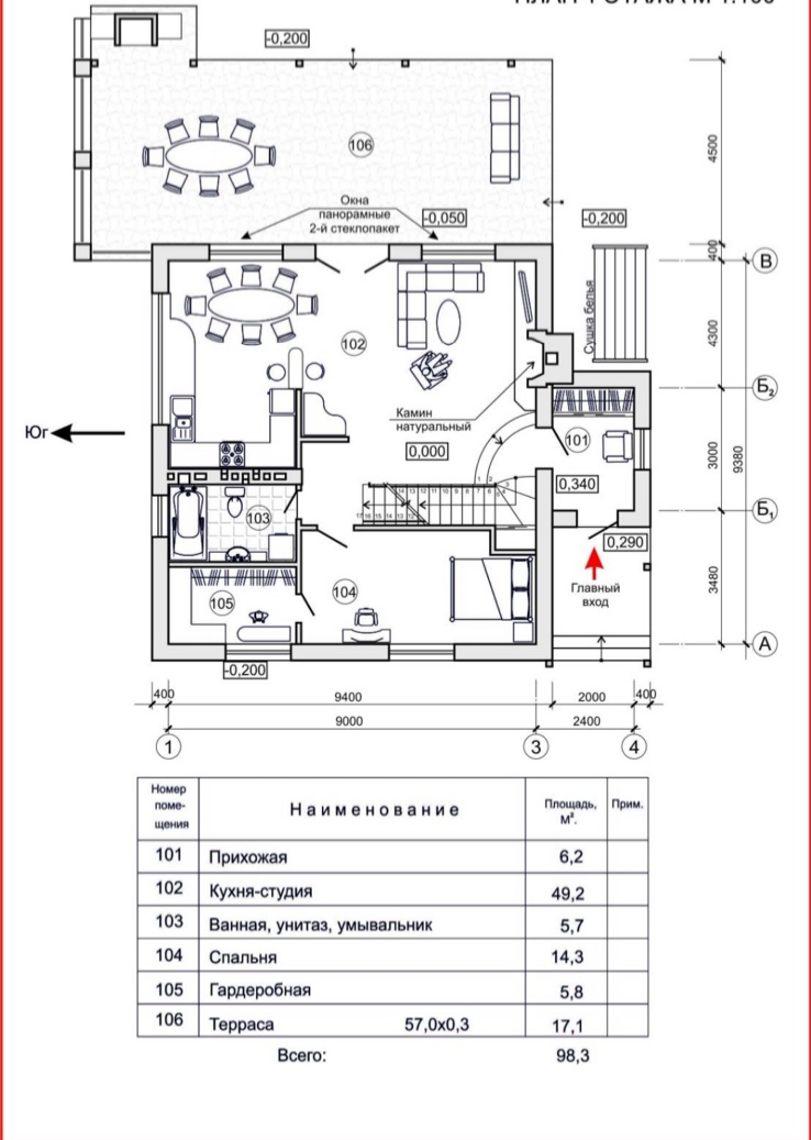 На первом этаже находятся прихожая, кухня-студия с выходом на крытую террасу, уютная спальня с гардеробной и санузел с ванной.