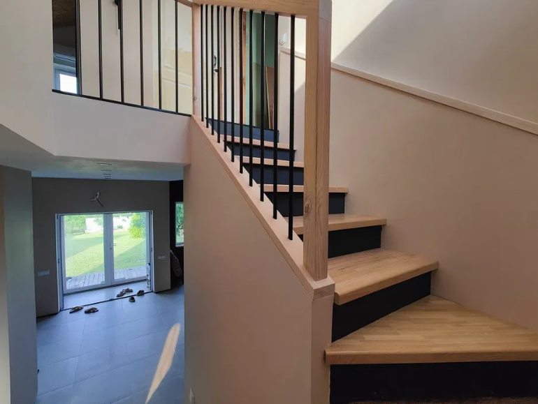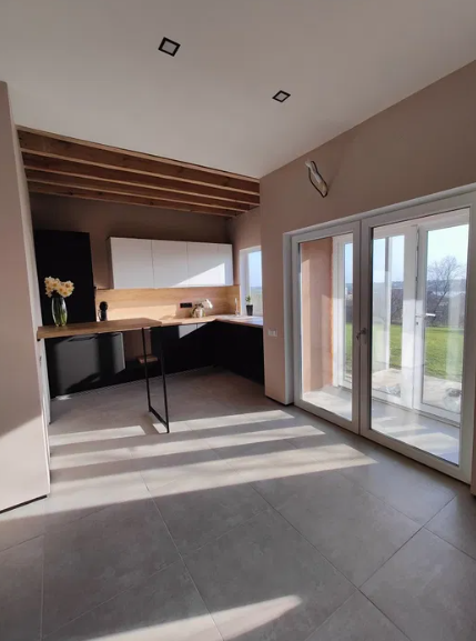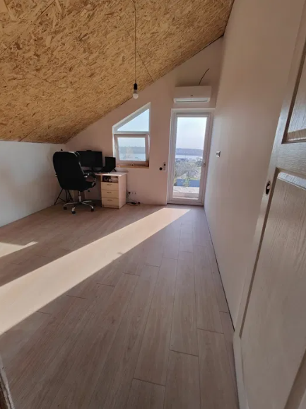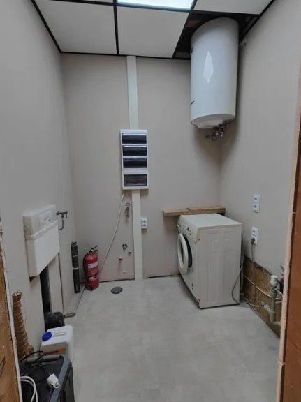 На первом этаже - Опенспейс с готовой кухней, камин, отдельная комната-кабинет, 2 выхода на передний и задний двор, санузел, котельная.