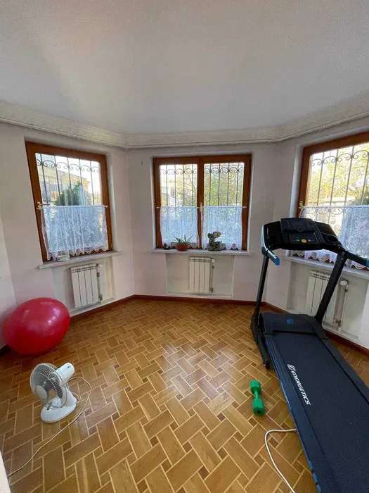 На втором этаже три раздельных комнаты, санузел, спортзал.