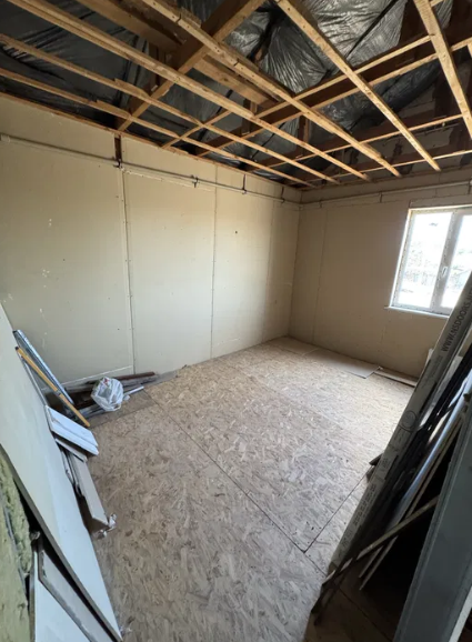 На 2-ом этаже - 1 комната (от строителей). Есть возможность достроить еще две комнаты (для этого есть стройматериал). В целом, на 2-ом этаже можно сделать 3 комнаты.