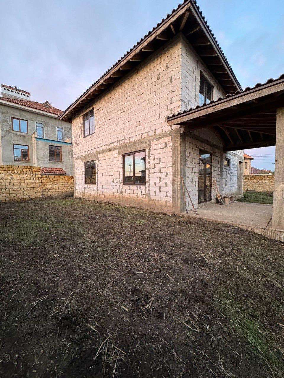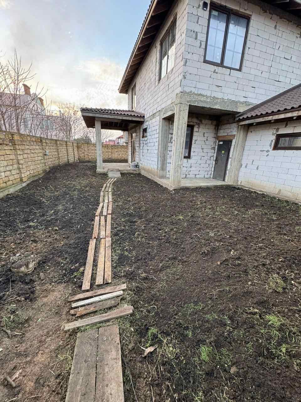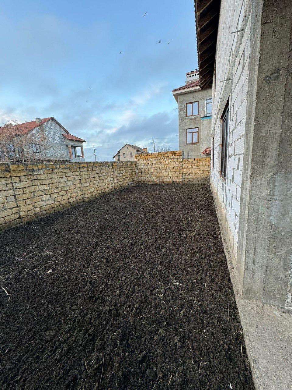 .Расположен на участке 4 сотки,правильной формы. Ширина фасада 18 м. По периметру каменный забор.