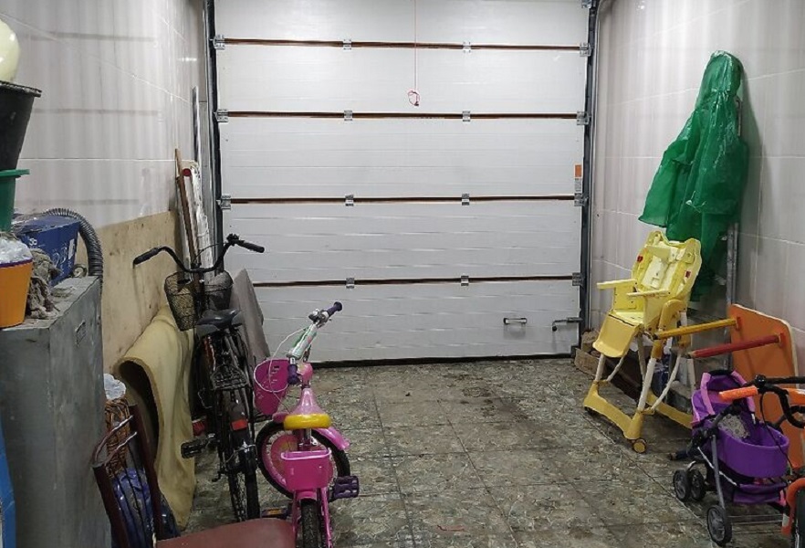 Просторный гараж полностью в плитке.