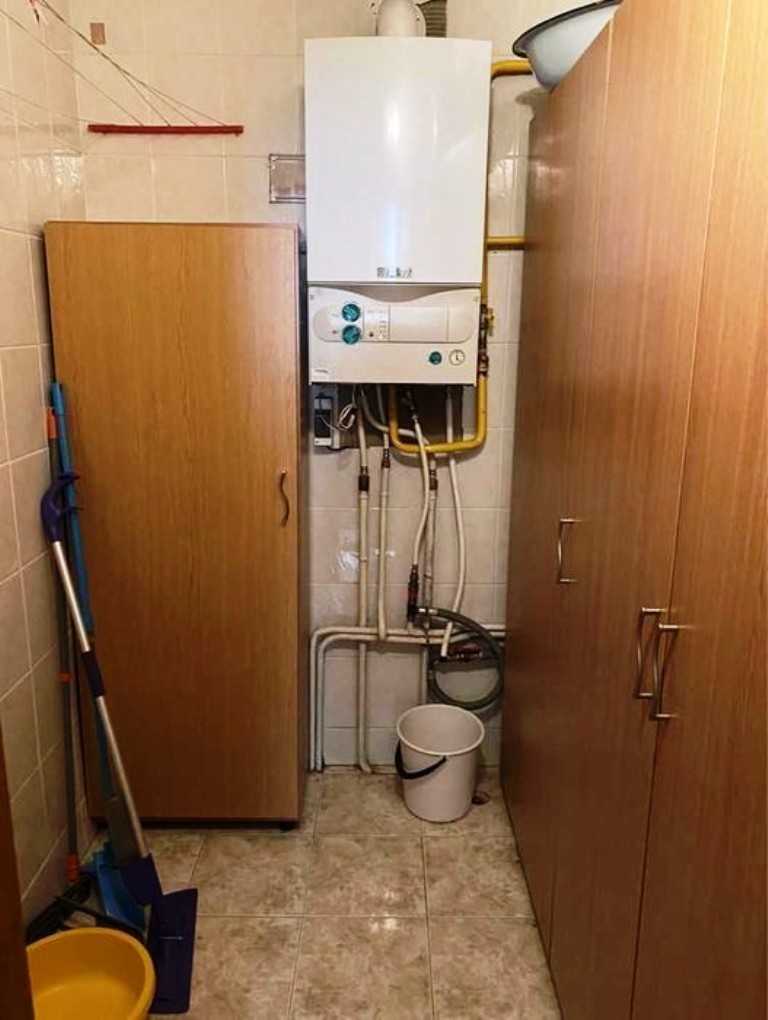 Отопление - газовый котёл, городская канализация.