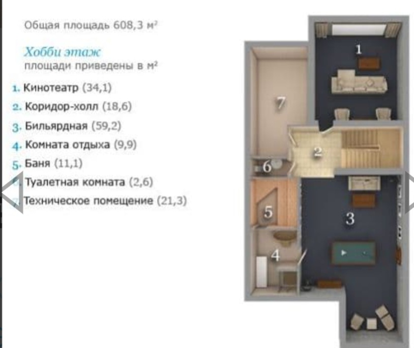 -1 этаж: баня, домашний кинотеатр, сан.узел, тех.помещение