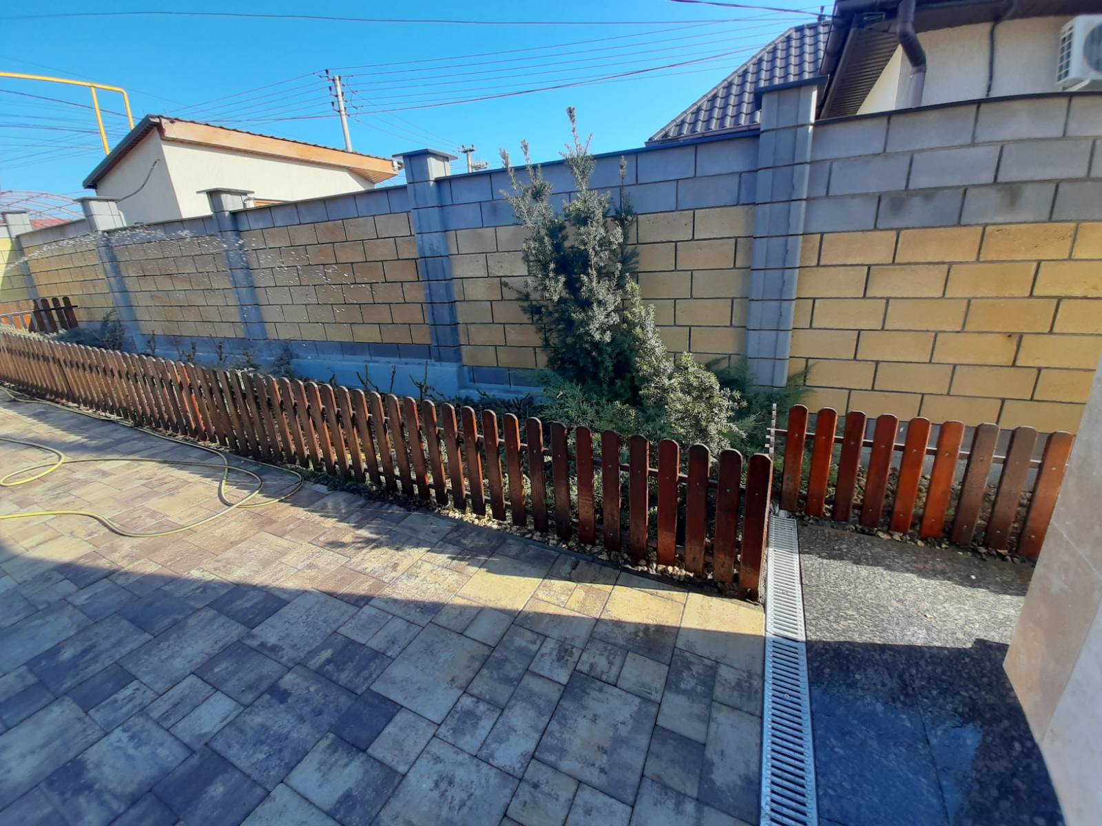 Двор вымощен качественной тротуарной плиткой. Есть навес для двух авто, вольер и хозпомещения.