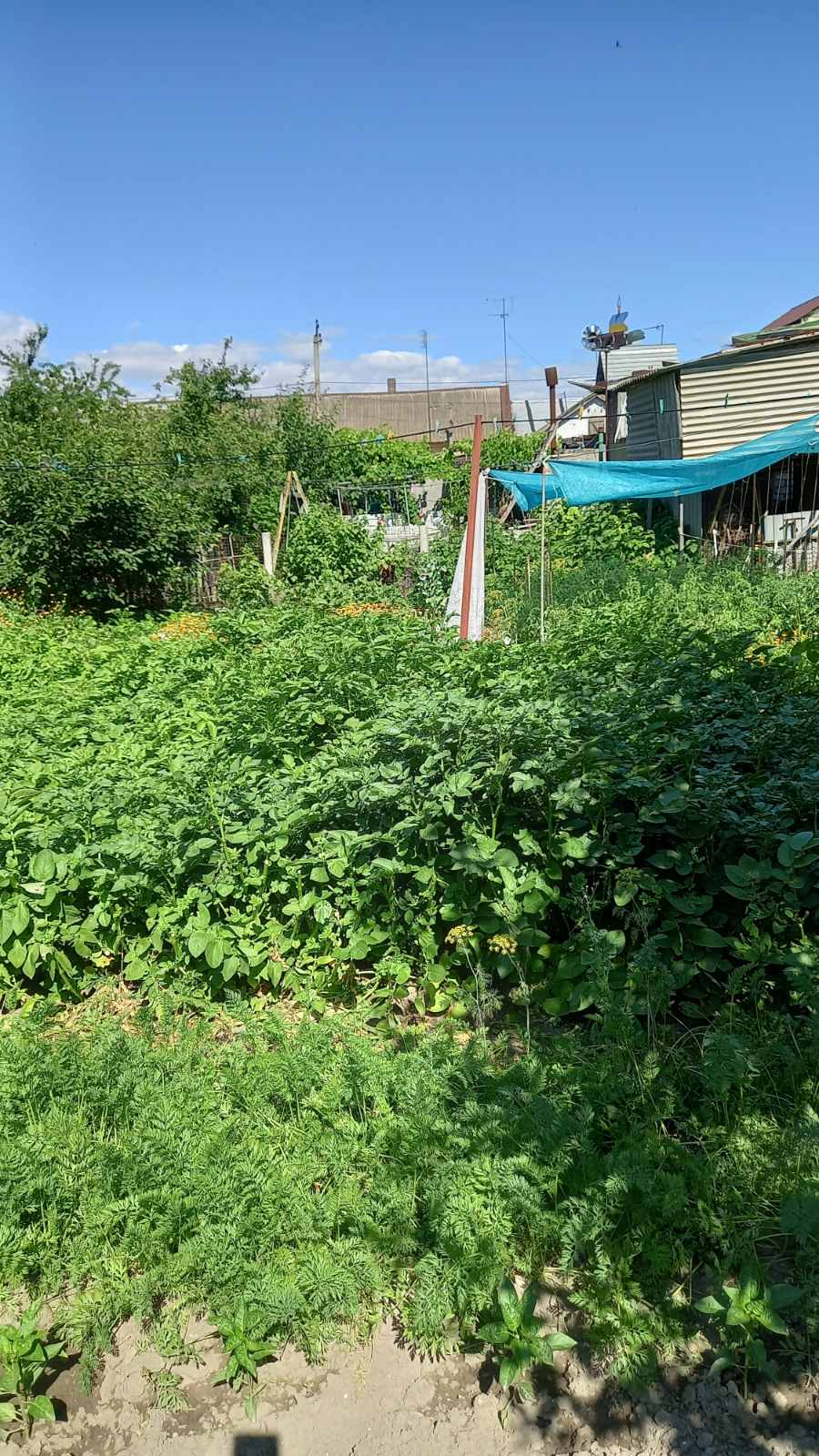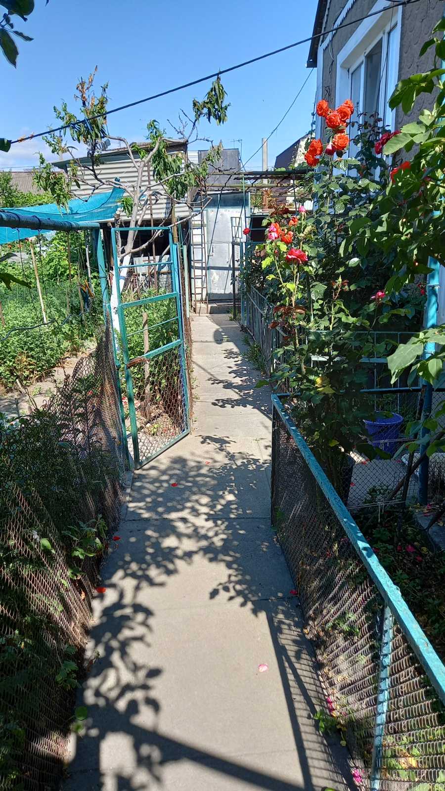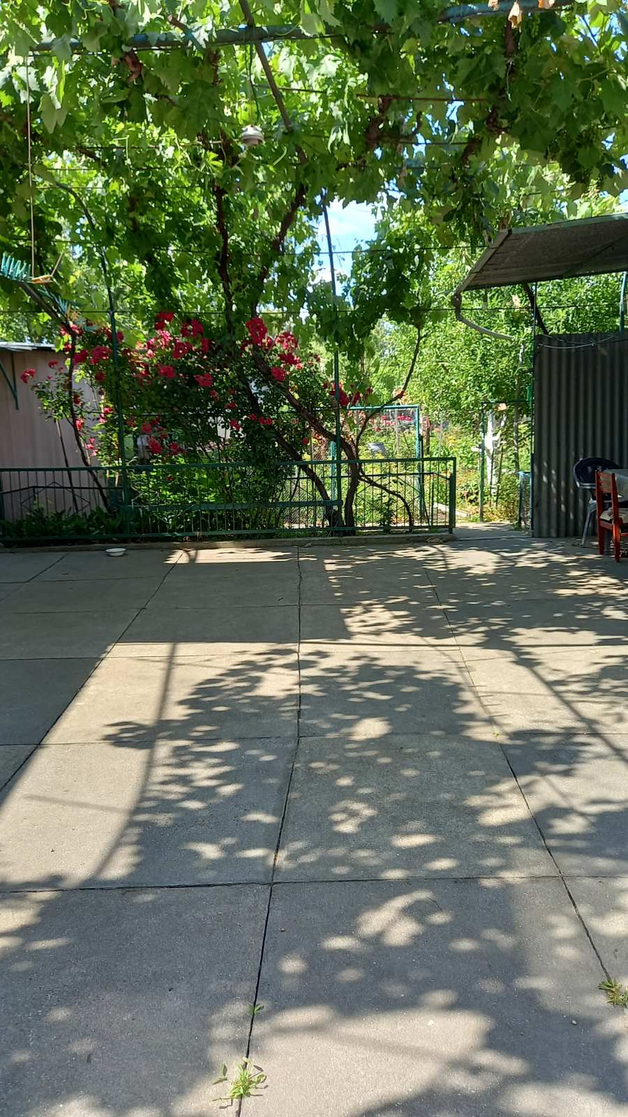 На участке есть сарай, гараж, летняя кухня, хороший виноградник, участок земли с плодовыми деревьями, клубника, малина.