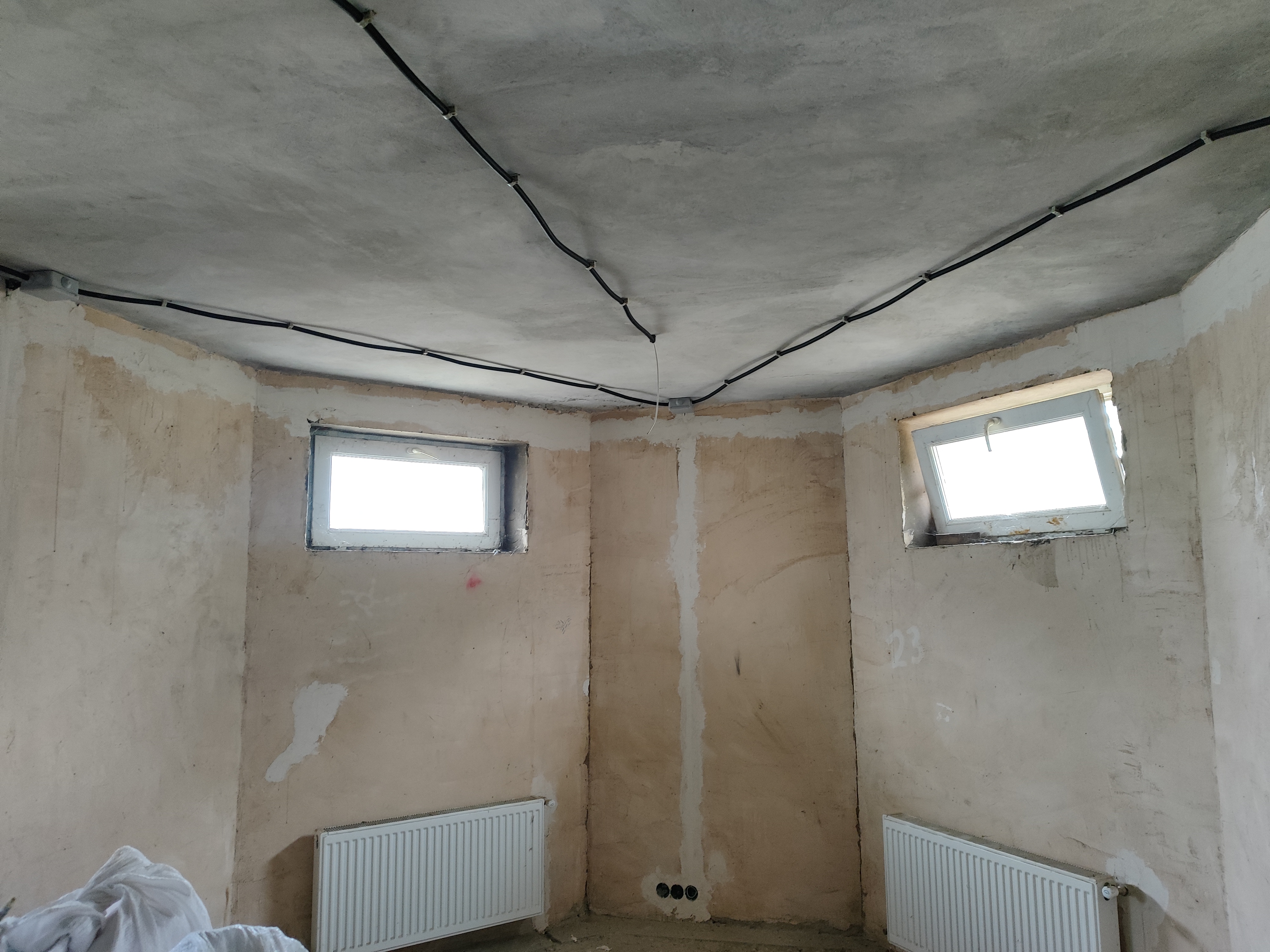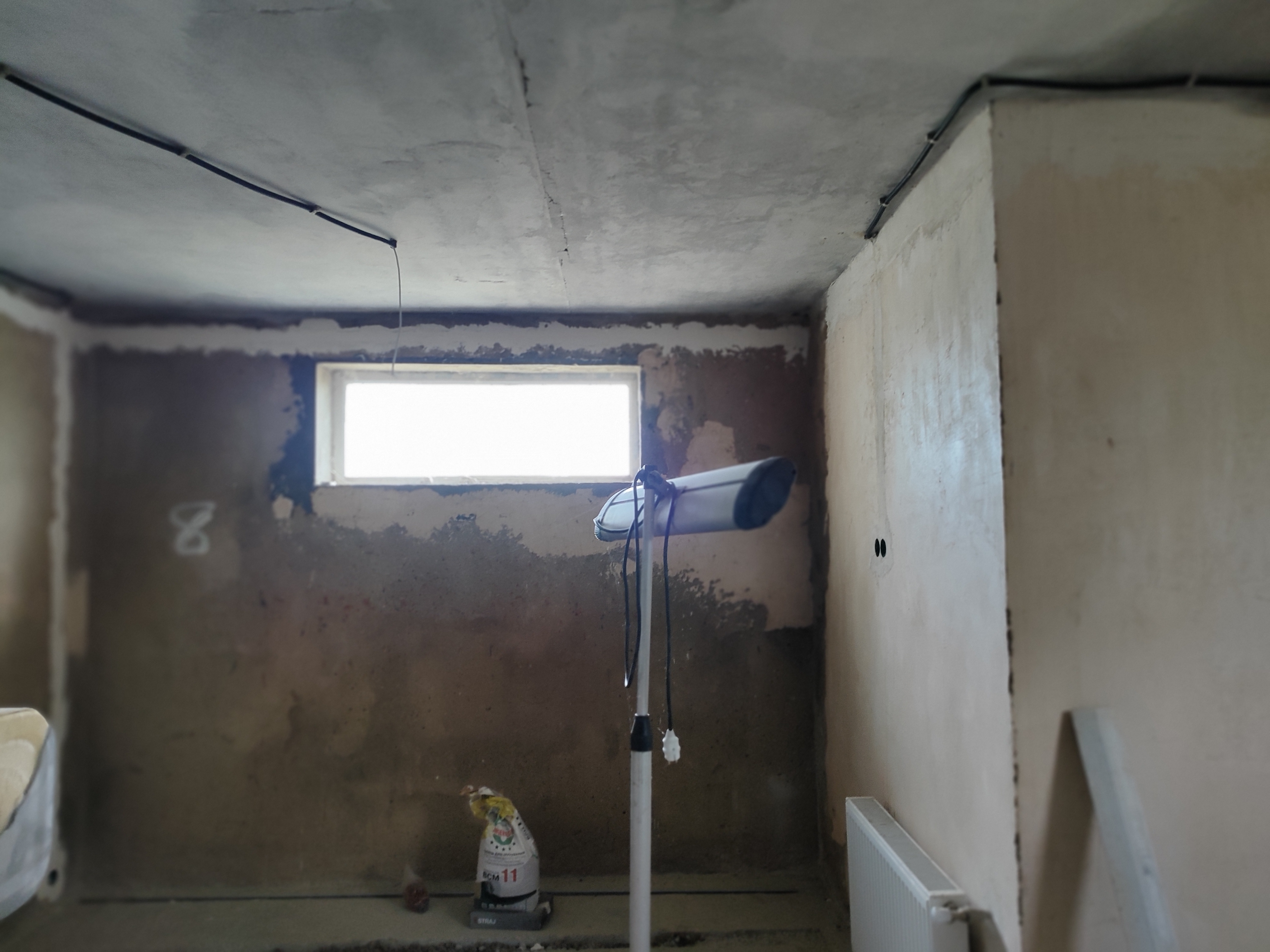 1 этаж- большое помещение, сауна с бассейном, санузел, котельная, гараж и лестница на второй этаж.