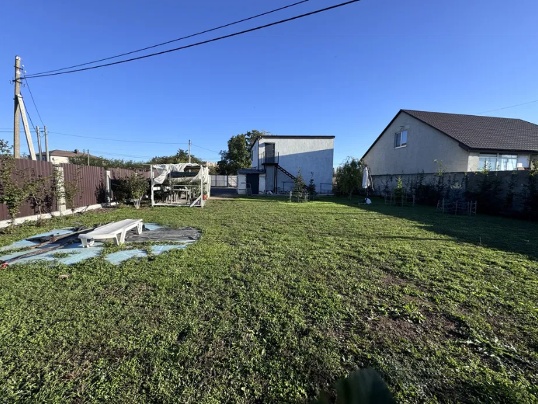 Загальна ділянка 7 соток. Будинок займає площу 7х8 м. На задній частині ділянки планувалось побудувати ще один двоповерховий будинок на 4 квартири (2 двохкімнатні і 2 однокімнатні, або тільки 2-х кімнатні). Таким чином на ділянці вміщається 6 або 4 квартири для здачі в аренду, 5 паркомісць, ландшафтна і мангальна зона з альтанкою. Також на ділянці маємо тимчасове укриття з фундаментних блоків. По трьом сторонам забор (фундамент, стовпи, профнастіл), четверта сторона з бетонних плит, відкатні ворота, калітка.