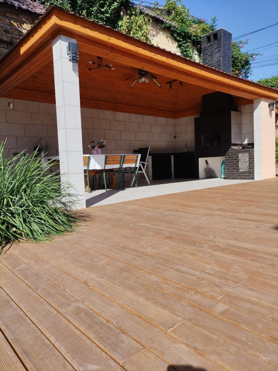 — Парковка на три авто (два под навесом и одно место перед домом).