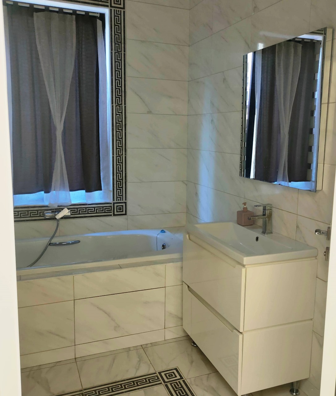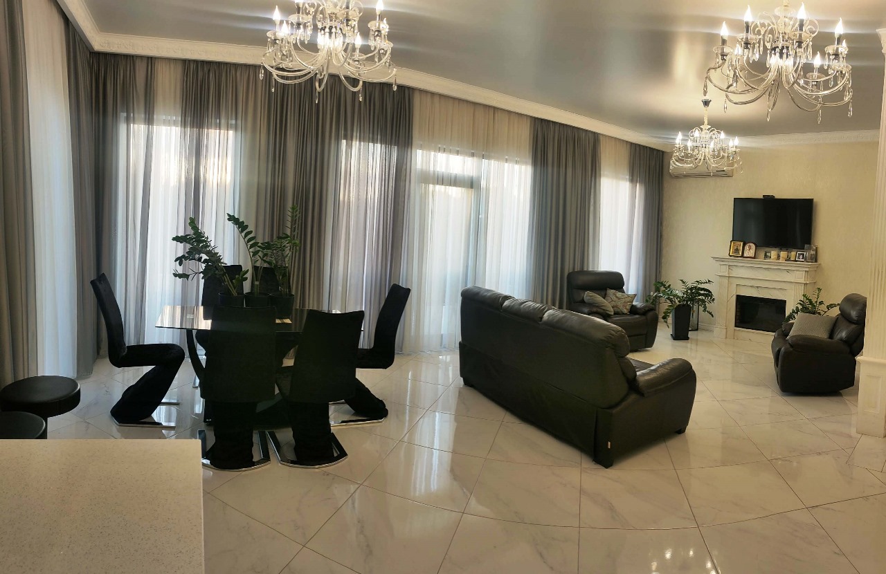 Просторний дом с хорошо продуманной удобной планировкой. На первом этаже - просторная гостиная - кухня - столовая с выходом на террасу, жилая комната, санузел, котельная. На второй этаж ведет удобная лестница, здесь четыре комнаты и санузел. В двух комнатах есть выход на балкон. Дом полностью укомплектован мебелью и техникой.