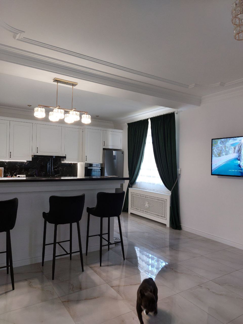 В доме современный качественный ремонт, высококачественные материалы, мебель и техника ведущих брендов.
