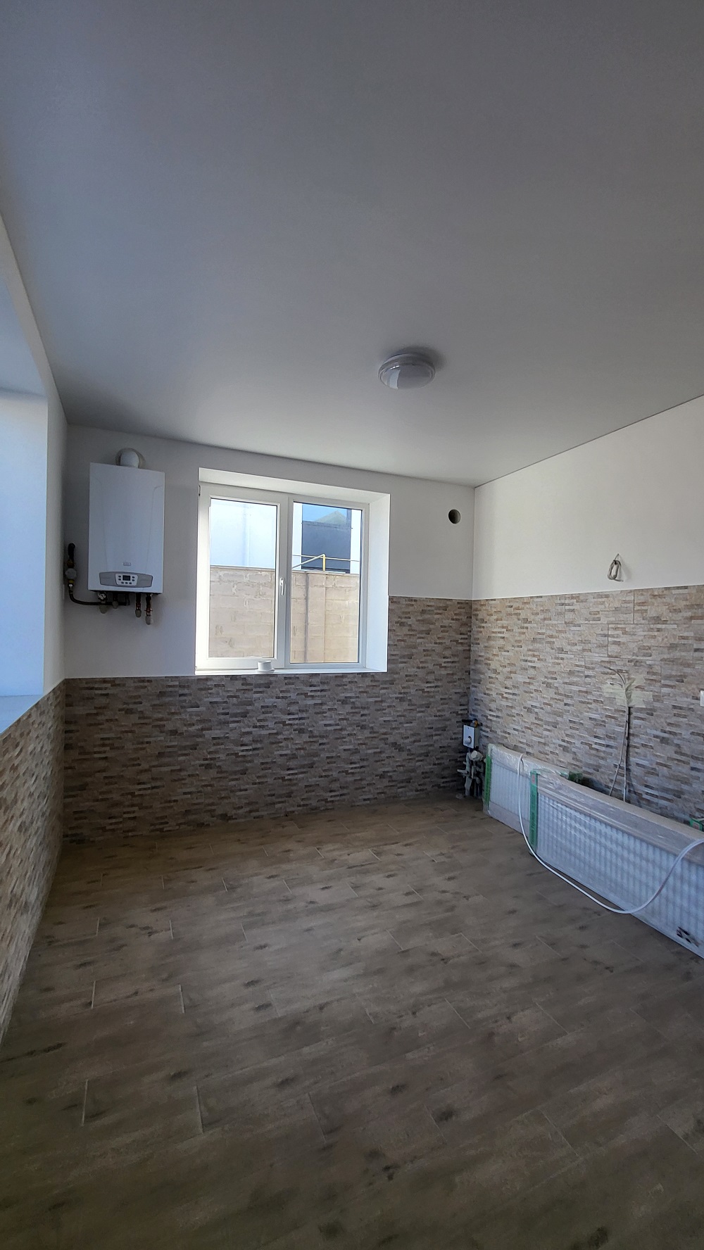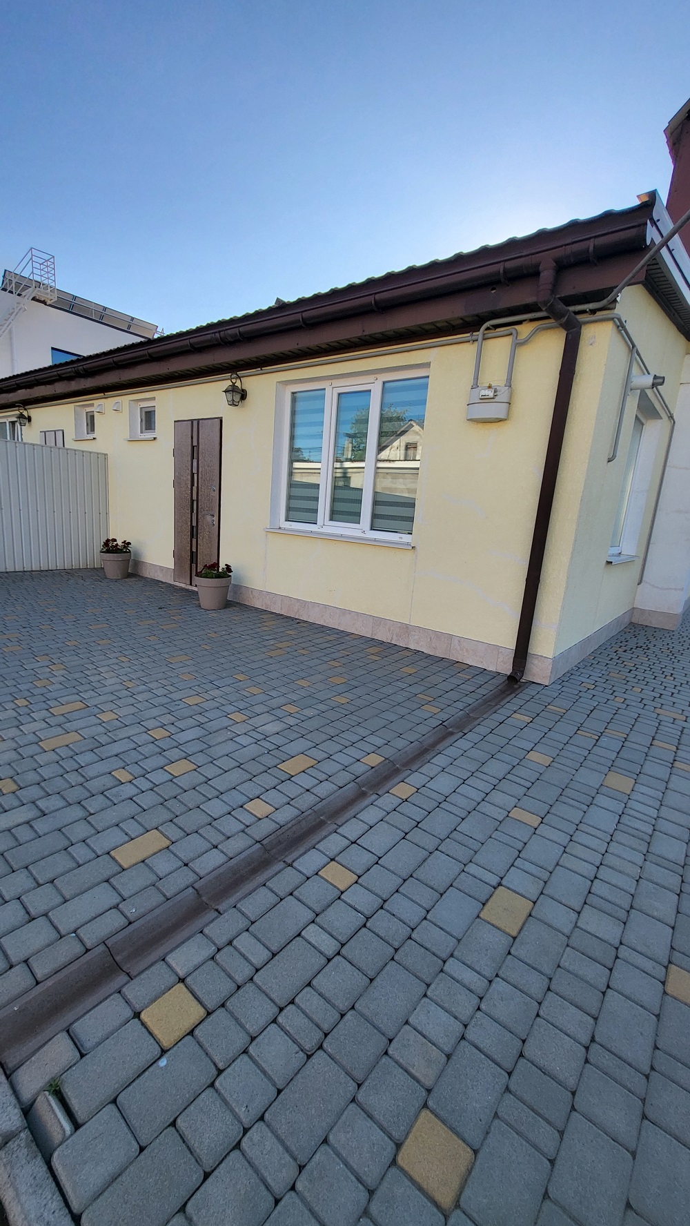 Каждая половина находится на участке 3,2 сотки (наружный и внутренний двор) каждая половина имеет: кухню 14м2, совмещённый санузел 5м2 с душевой кабиной, гостиная 18м2, 2 спальни по 9м2, тёплый водяной пол на кухне и в санузле. Каждая половина дома имеет свой 2-х контурный котёл (BAXI, газовый, Италия) ,отопление (стальные радиаторы). Установлены 3-х камерные металлопластиковые окна. Бронированные входные двери, фирмы Straj, замки Motura. Сделана идеальная стяжка под ламинат или паркет. Электропроводка выполнена качественно, автоматика и щитки фирмы Hager. Крыша металлочерепица, фасад дома отштукатурен, нанесён короед и покрашен. Каждая половина дома имеет площадку под авто, двор выложен тротуарной плиткой. Въезд на территорию не фасадный, имеет автоматические ворота, территория участка ограждена забором, много свободной земли под озеленение. Закрытая охраняемая территория на несколько домов. Тихое место расположение.