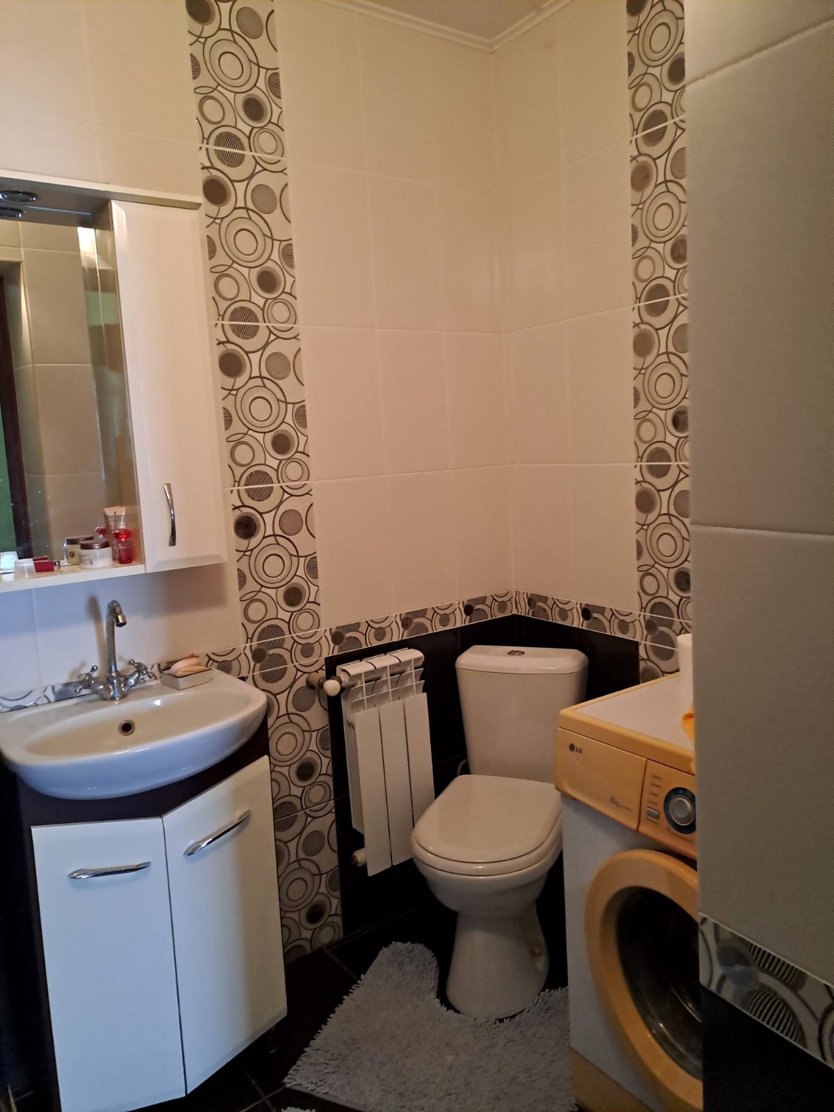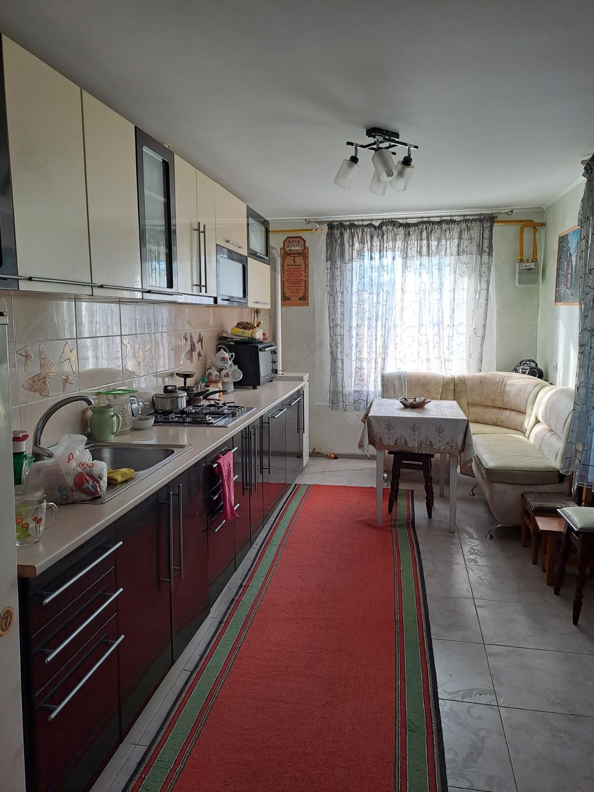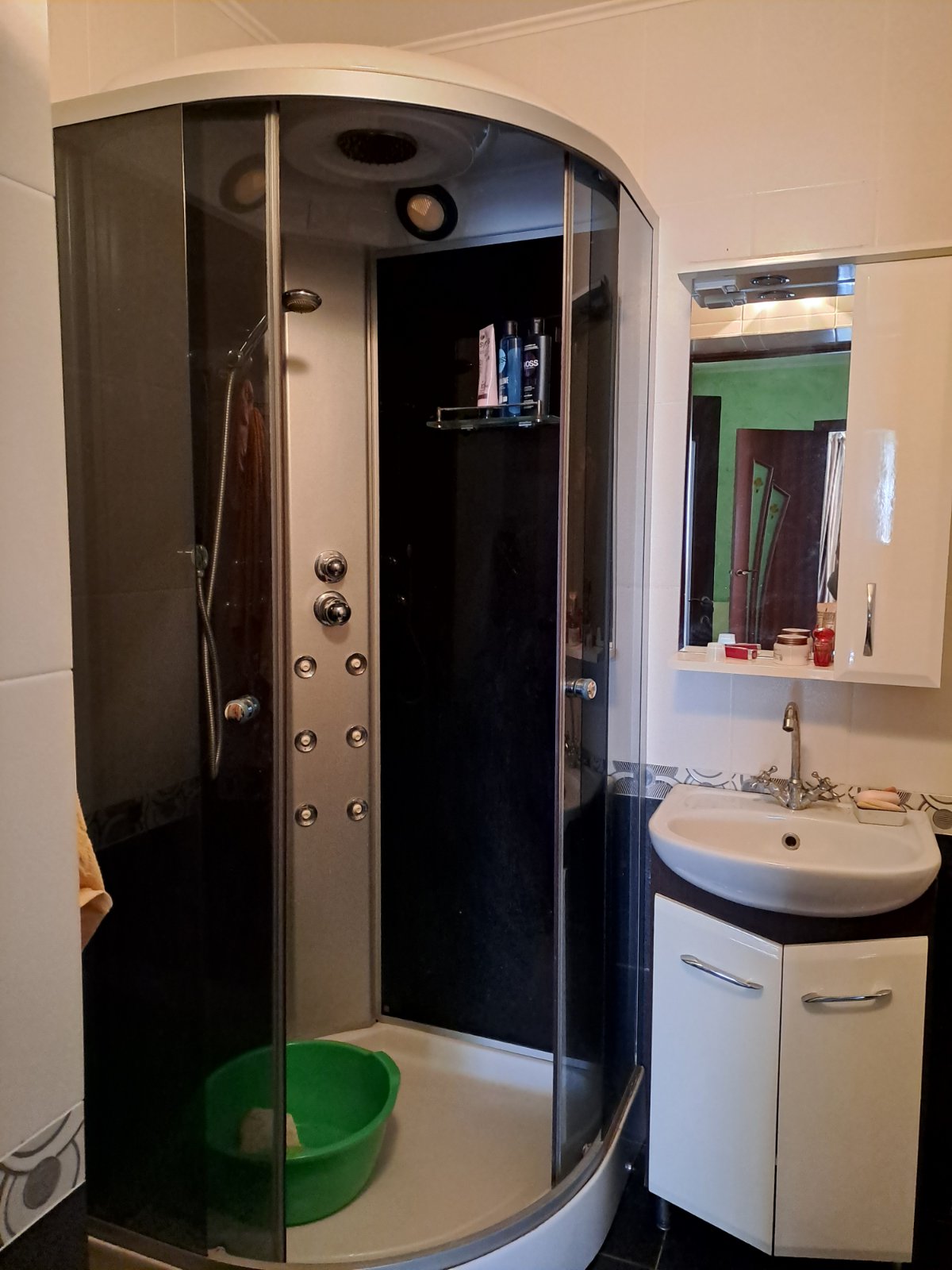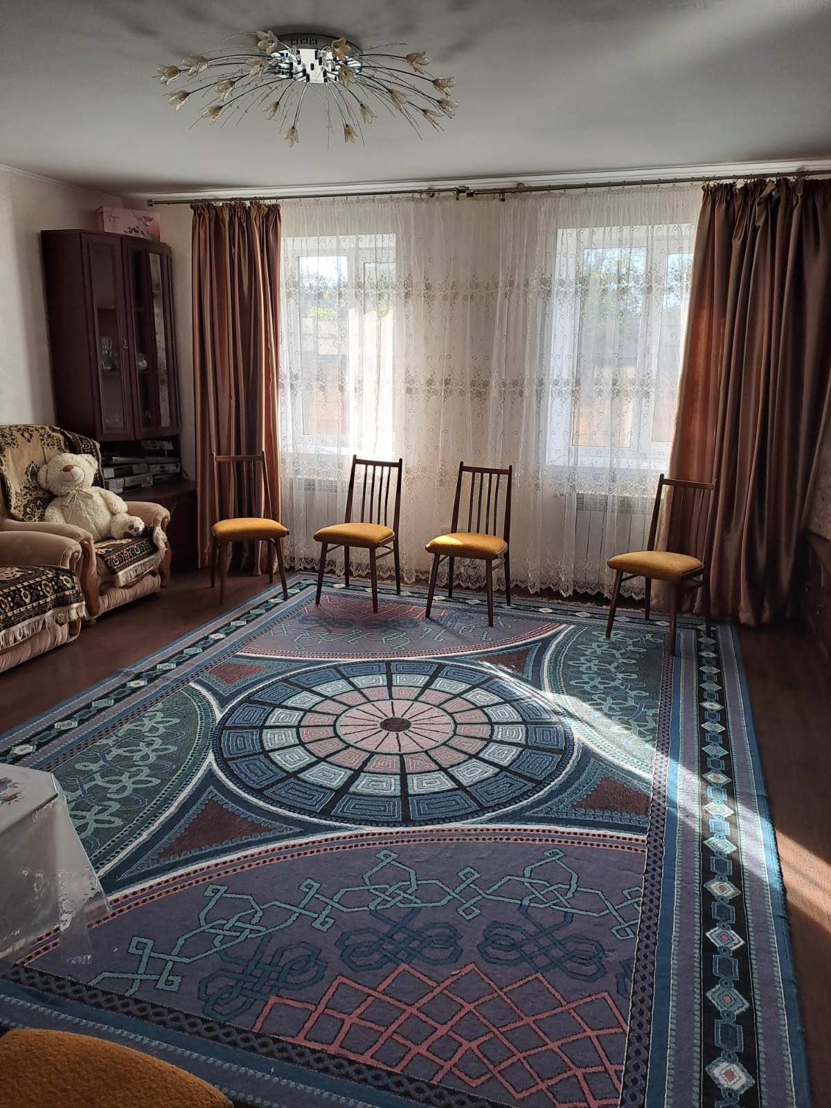 Дом одноэтажный. Общая площадь 100м.кв, 3 комнаты, кухня, совмещённый санузел с душем.