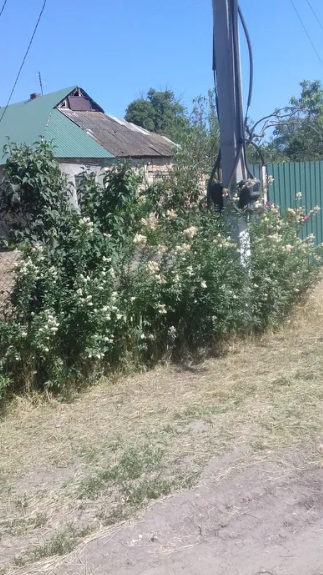Уютный двор с живой изгородью и ароматными цветами, зелёный забор, цветущие кусты жасмина и роз, много кустарников и плодовых деревьев.